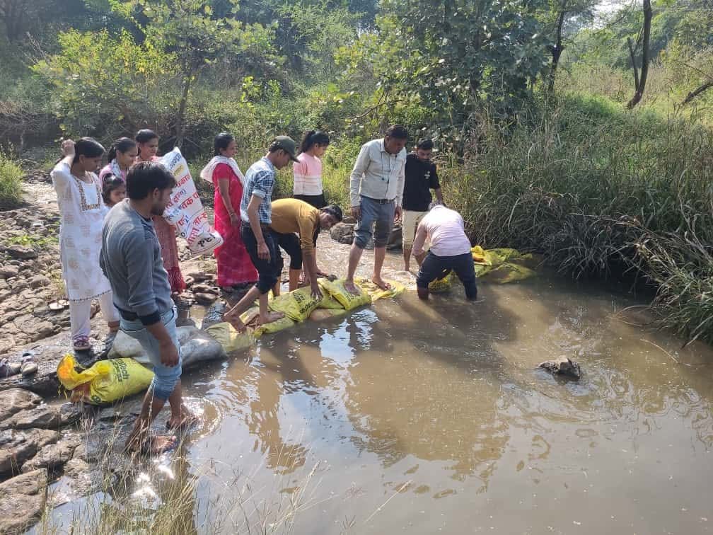 ग्राम मोहना में ग्रामीणों ने बनाया बोरी बंधान