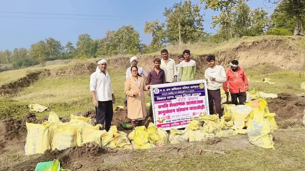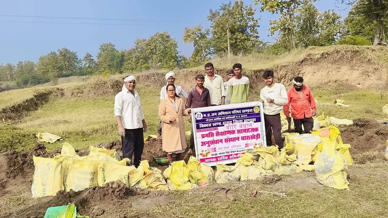 खण्डवा#कलेक्टर श्री ऋषव गुप्ता के निर्देश पर खंडवा जिले के सभी विकासखंडों में स्थित छोटे बड़े नालों में बहते पानी को रोकने के लिए बोरी बंधान संरचनाओं का निर्माण किया जा रहा है। इसी क्रम में ग्राम छपीपुरा, ग्राम पंचायत धारुखेड़ी में रूपारेल नदी पर जल संरक्षण को बढ़ावा देने के लिए ग्रामीणों ने श्रमदान कर बोरी बंधान संरचना का निर्माण किया। जन अभियान परिषद के जिला समन्वयक श्री जगदीश पटेल ने बताया कि बोरी बंधान के निर्माण से आने वाले दिनों में आसपास के क्षेत्र के भू-जल स्तर में वृद्धि होगी। इसके साथ ही आसपास के खेतों में सिंचाई की सुविधा बढ़ेगी तथा खेतों की मिट्टी में नमी बनी रहेगी और फसलों की उत्पादकता बढेगी। कार्यक्रम में शासकीय प्राथमिक शाला झूमरखाली की शिक्षिका नीतू ठाकुर तथा जन अभियान परिषद के नवांकुर एवं प्रगति शैक्षिक सामाजिक अनुसंधान संस्थान के अध्यक्ष श्री चंचल सिंह दरबार एवं अन्य ग्रामीणजन उपस्थित थे।