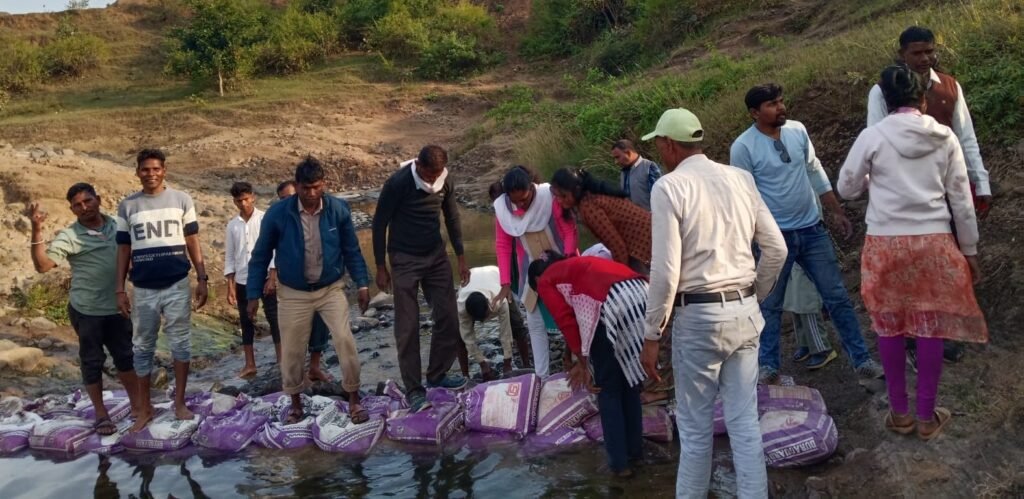 मंडला। मध्य प्रदेश जन अभियान परिषद विकासखंड मोहगांव के अंतर्गत ग्राम उमरडीह के धार्मिक स्थल गुप्त गंगा में जल संचय अभियान चलाया गया। इस अभियान में जिला समन्वयक राजेंद्र चौधरी एवं ब्लॉक समन्वयक नेम लाल धुर्वे के मार्गदर्शन में नवांकुर संस्था आदर्श ग्राम विकास समिति के द्वारा गुप्त गंगा में बीएसडब्ल्यू, एमएसडब्ल्यू के छात्र-छात्राएं, जनप्रतिनिधि, समस्त नवांकुर संस्था, ग्राम की प्रस्फुटन समिति एवं ग्राम पंचायत के सहयोग से ग्रामीणजनों के सहयोग से गुप्त गंगा में बोरी बंधान का कार्य किया गया, जिसमें 75 बोरियों का बोरी बंधान कार्य किया गया, जिसमें कुल 53 लोगों ने सहभागिता की। इस कार्यक्रम में नवांकुर संस्था के अध्यक्ष गोवर्धन यादव, गोविंद कुरम, मानिक परते, सरस्वती मरावी, समस्त मेंटर साथियों के द्वारा जल संचय अभियान में निरंतर जल का संरक्षण करना आवश्यक है जल ही जीवन है जल है तो कल है इस उद्देश्य को लेकर के बोरी बंधान का कार्यक्रम सफलतापूर्वक किया गया सभी ग्रामीणजनों का सहयोग सराहनीय रहा जल संचय अभियान को लोगो के अनुसरण में लाना इस कार्यक्रम का मुख्य उद्देश्य था जल संरक्षण कुआं नाला तालाब नदी आदि को रखने के सभी उपस्थित जनो के द्वारा शपथ लिया गया और नारा भी लगाया गया सभी ने उत्साह पूर्वक संकल्प लिया गया साथ ही गुप्त गंगा कैंपस में पौधों के संरक्षण के लिए पौधे में पानी डाला गया कार्यक्रम के समापन सत्र में सभी का सामूहिक समरसता भोज स्वल्पाहार चाय आदि की व्यवस्था की एवं कार्यक्रम का समापन किया गया।