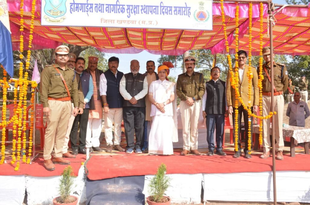 खण्डवा//होमगार्ड्स का 79वां स्थापना दिवस शनिवार को मनाया गया। कार्यक्रम में मुख्य अतिथि के रूप में विधायक श्रीमती कंचन मुकेश तन्वे तथा विशिष्ट अतिथि के रूप में पुलिस अधीक्षक श्री मनोज कुमार राय उपस्थित थे।होमगार्ड्स तथा नागरिक सुरक्षा स्थापना दिवस के अवसर पर होमगार्ड्स लाइन खण्डवा में विधायक श्रीमती तन्वे ने परेड की सलामी ली, जिसमें होमगार्ड्स, एसडीईआरएफ, आपदा मित्र, सिविल डिफेंस एवं एनसीसी कैडेट्स के प्लाटून शामिल रहे। सलामी के पश्चात् श्री रविन्द्र महिवाल, प्लाटून कमाण्डर ने अतिथियों को परेड का निरीक्षण कराया। कदमताल के साथ परेड कमाण्डर श्री मनीष यादव, प्लाटून कमाण्डर तथा श्री नितिन पुरे, परेड टूआईसी के द्वारा परेड का नेतृत्व किया गया। परेड में एसडीईआरएफ के रेस्क्यू वाहन मय उपकरण के साथ प्रदर्शन किया गया। होमगार्ड्स स्थापना दिवस कार्यक्रम में विधायक श्रीमती तनवे ने गत वर्ष में होमगार्ड्स, नागरिक सुरक्षा तथा आपदा प्रबंधन के द्वारा किये गये कार्यों की प्रशंसा की।