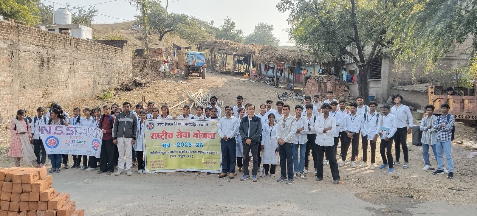 मध्य प्रदेश शासन उच्च शिक्षा विभाग की राष्ट्रीय सेवा योजना वार्षिक कैलेंडर कार्य योजना 2025-26 के अंतर्गत दिलीप सिंह भूरिया शासकीय आदर्श स्नातकोत्तर महाविद्यालय झाबुआ की राष्ट्रीय सेवा योजना इकाई द्वारा गोद ग्राम बाडकुवां में एक दिवसीय दिवा शिविर का आयोजन किया गया। यह शिविर प्रभारी प्राचार्य प्रो. पी.के. उछावर के मार्गदर्शन में सफलतापूर्वक संपन्न हुआ।