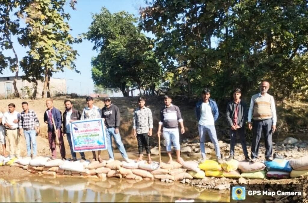 ग्राम सेल्दा माल में ग्रामीणों ने श्रमदान कर “बोरी बंधान” बनाया