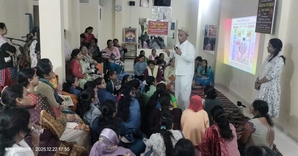 सिंधी कॉलोनी स्थित गुरु कृपा योगा स्टूडियो में और सिंधी धर्मशाला में उक्त आयोजन किया गया।साथ ही कई अन्य धर्म स्थलों पर यह आयोजन किया गया।आनंद मपुर कुटिया,पदमनगर एवं ब्रह्मकुमारी आश्रम में भी निःशुल्क सेवा भोपाल के आरोग्य केंद्र से आए नेचुरोपैथी डॉक्टर रमेश टेवानी द्वारा नेचुरोपैथी शास्त्र पर आधारित जानकारी दी गई।शिविर का उद्देश्य प्राकृतिक उपचार पद्धतियों के माध्यम से आमजन को स्वस्थ जीवनशैली के प्रति जागरूक करना था।कार्यक्रम में नेचुरोपैथी विशेषज्ञों ने योग,प्राणायाम, आहार चिकित्सा,जल चिकित्सा एवं प्राकृतिक दिनचर्या के महत्व पर प्रकाश डाला।डॉ रमेश टेवानी ने रोगों की जड़ तक पहुंचकर बिना दवाइयों के उपचार की पद्धति समझाई।बड़ी संख्या में नागरिकों ने शिविर में भाग लेकर परामर्श प्राप्त किया।आयोजकों ने बताया कि भविष्य में भी ऐसे शिविरों के माध्यम से समाज को प्राकृतिक और संतुलित जीवनशैली अपनाने के लिए प्रेरित किया जाएगा।उपस्थित लोगों ने इस पहल की सराहना करते हुए इसे स्वास्थ्य के प्रति जागरूकता बढ़ाने वाला कदम बताया।शिविर के दौरान गुरुकृपा योगा स्टूडियो मे योग कर रोग मुक्त जीवन जी रहे सदस्यों को सम्मानित किया गया,जिसमें खुशी वासवानी,सिमरन हेमवानी,लवीना आहूजा, जिया हेमवानी,लता सहजवानी,पलक पिंजानी,गरिमा हेमवानी,जिया सादीजा ,सोनी शिवनानी ,वैजंती कृपलानी ,प्रीति मोटवानी, शालिनी मालवीया पुरवा वर्मा ,लता उपाध्याय, ननदिनी मालविया, आरती राठोर ,गीता पंजवानी,नेहा मालानी,ममता जैसवानी ,सीमा हेमवानी,मोनिका हेमवानी,अनीता चंचलानी,सौम्या सादीजा ,सुम्मती जैसवानी सिमरन आहूजा आदि को सम्मानित किया गया भारतीय सिंधु सभा महिला शाखा के प्रवक्ता कमल नागपाल ने बताया कार्यक्रम के दौरान समाज के वरिष्ठ समाज सेवी अनिल आरतानी द्वारा पेट साफ करने के 100 यंत्र एवं किताब निशुल्क बाटी गई।कार्यक्रम में अतिथि के रुप में ब्रह्मकुमारी आश्रम से शक्ति दीदी एवं सिंधी समाज के वरिष्ठ अनिल आरतानी एपार्षद काजल लालवानी, निरंकारी मंडल की हरि दीदी एवं सीमा आनंद ने निभाई।कार्यक्रम का संचालन नीलम बजाज ने किया।भारतीय सिंधु सभा महीला शाखा अध्यक्ष कोमल होतवानी ने बताया कि साल की समाप्ति एवं नए साल की आगमन पर कुछ ऐसा किया जाए जिससे सभी को लाभ हो ओर दुआएं प्राप्त हो ये सोच रखते हुए उनके द्वारा इस शिविर का आयोजन किया गया।शिविर में 300 से लोगो ने लाभ प्राप्त किया।कार्यक्रम में मुख्य भूमिका भारतीय सिंधु सभा महिला शाखा की रिद्धि तेजवानी, दीपिका कोटवानी, मीनाक्षी ढोंडवानी, निलम बजाज,रानी खेमानी,नंदिनी राजोरकर,काज़ल लालवानी,जिया मोटवानी,प्रिया मोटवानी,जिया शादीजा,संगीता झुमरानी,अनीता चंचलानी,मोना गुर
