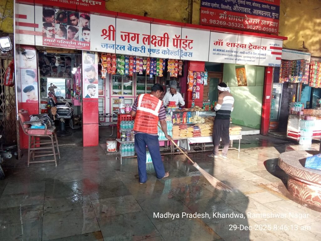 खण्डवा// नगर निगम खंडवा द्वारा स्वच्छता सर्वेक्षण 2025_26 की तैयारियां तेज करते हुए आयुक्त श्रीमती प्रियंका राजावत पटेल ने स्वच्छता आदेश जारी करते हुए निगम के अधिकारियो कर्मचारियो की ड्यूटी वार्ड जमादारो एवं स्वच्छता निरिक्षको के साथ समन्वय के साथ स्वच्छता अभियान चलाने का निर्देश दिया। उपायुक्त श्री सचिन सिटोले ने बुधवारा वार्ड व झोन क्रमांक 2 का निरीक्षण किया तथा साफ-सफाई कराये जाने के निर्देश दिए, स्वच्छता की टीम दारा बस स्टैंड पर सफाई अभियान चलाया,शौचालय की सफाई की एवं जनजागृति हेतु कचरा प्रथककरण किया जाकर डोर टु डोर कचरा वाहनो मे दिए जाने की अपील की