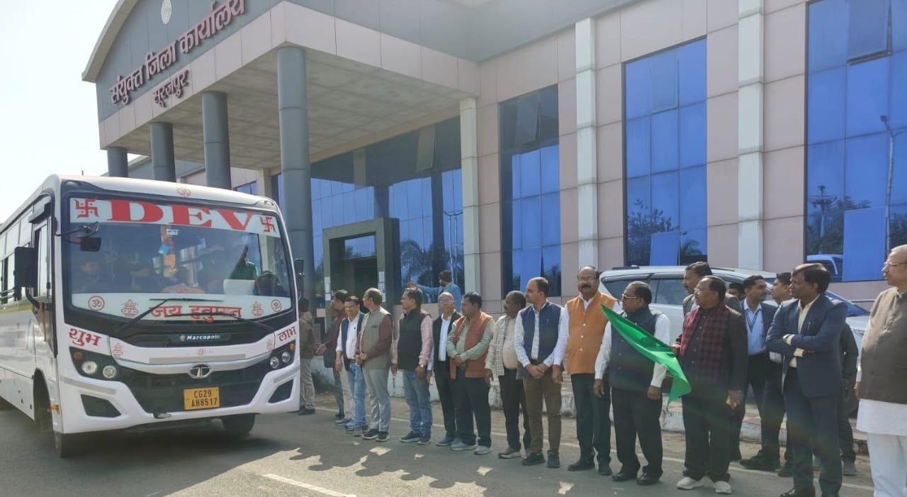 मंत्री श्री रामविचार नेताम ने विद्यार्थियों की शैक्षणिक बस को हरी झंडी दिखाकर किया रवाना