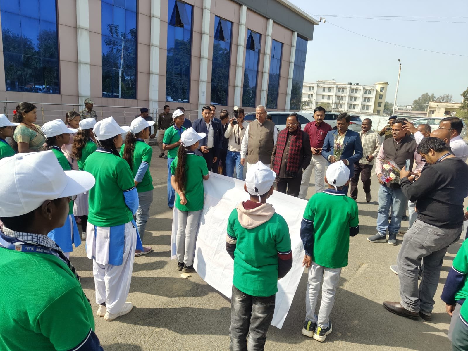 सूरजपुर 04 जनवरी 2026/ राष्ट्रीय आविष्कार अभियान के अंतर्गत जिले के प्राथमिक एवं माध्यमिक शालाओं के विद्यार्थियों के लिए आयोजित शैक्षणिक भ्रमण को कृषि मंत्री श्री रामविचार नेताम ने हरी झंडी दिखाकर रवाना किया। यह भ्रमण कलेक्टर श्री एस. जयवर्धन के मार्गदर्शन में, समग्र शिक्षा के अंतर्गत संचालित किया जा रहा है।
