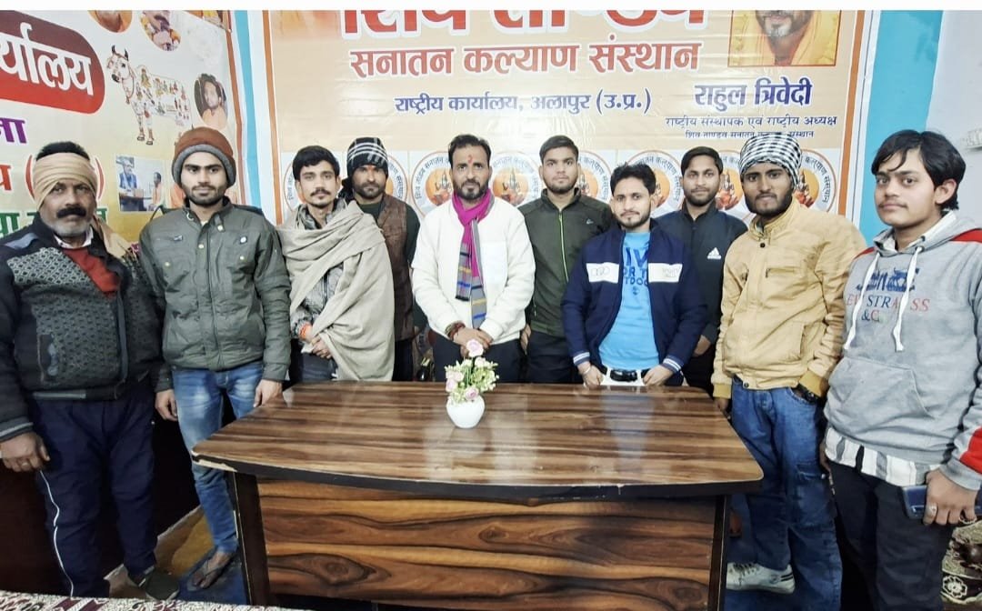 शिव तांडव सनातन कल्याण संस्थान के राष्ट्रीय कार्यालय पर आज रात्रि में एक मीटिंग रखी गई संगठन को मजबूत करने के लिए और कई महत्वपूर्ण विषय पर चर्चा हुई शिव तांडव सनातन कल्याण संस्थान के राष्ट्रीय संस्थापक एवं राष्ट्रीय अध्यक्ष राहुल त्रिवेदी ने अपने पदाधिकारी से कहा की बांग्लादेश में जो हिंदुओं के साथ हो रहा है उसको लेकर भी चर्चा हुई और जो गौ माता पर अत्याचार हो रहे हैं उसे विषय को लेकर भी वतलब हुई जल्द ही शिव तांडव सनातन कल्याण संस्थान पूरे उत्तर प्रदेश में जन आंदोलन करने की रूपरेखा भी तय की गई जल्द ही उत्तर प्रदेश के मुख्यमंत्री आवास पर अनशन गीत किया जाएगा बैठक में कौन-कौन का नाम है शनि सनातनी मनोज सनातनी रोहित सनातनी शोभित सनातनी मोहित सनातनी शिवम सनातनी का नाम है समीर अभय सारस्वत भोले अतुल त्रिवेदी ओमकार उर्फ पप्पू हीरो का नाम है अंशु सनातनी चिंटू सनातनी आदि लोग उपस्थित रहे