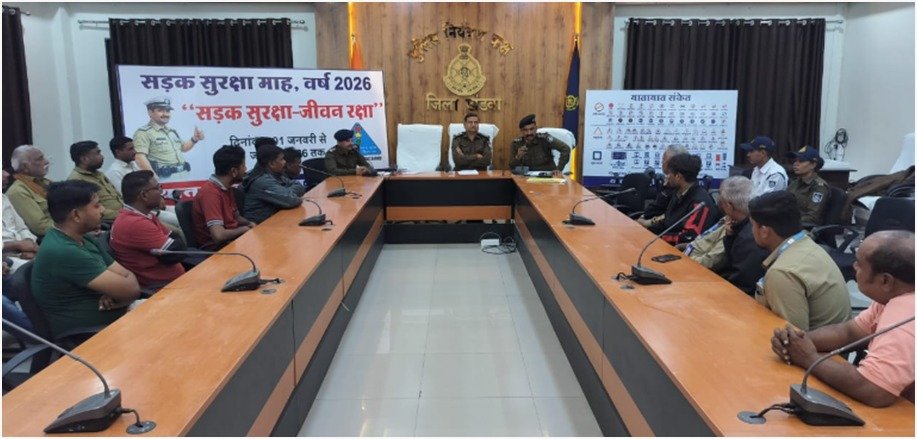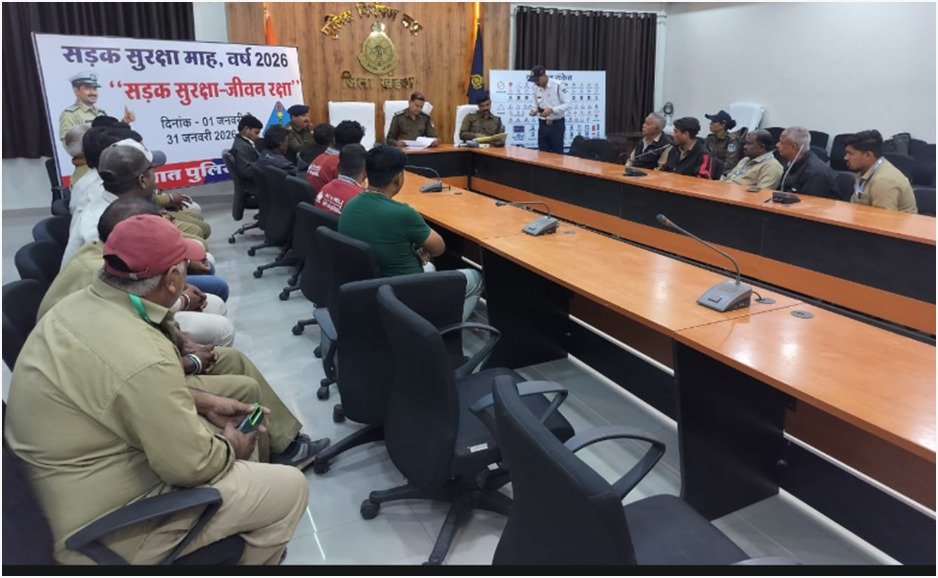 राष्ट्रीय सड़क सुरक्षा माह जनवरी 2026 के क्रियान्वयन में ट्रेफिक पुलिस द्वारा यातायात जागरूकता कार्यक्रम पुलिस कंट्रोल रूम मे आयोजित किया गया