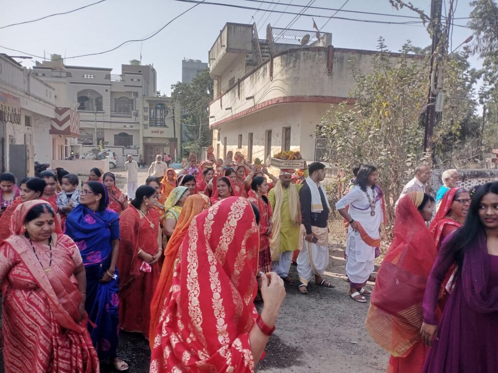 श्री नीलकंठेश्वर वार्ड गायत्री मंदिर बाहेती कॉलोनी में श्रीमद् भागवत ज्ञान गंगा कथा का शुभारंभ आज भव्य कलश यात्रा के साथ शुरू हुआ, यह कलश यात्रा श्री द्वारकाधीश मंदिर से निकलकर इंदिरा चौक, वैकुंठ नगर, भंडारिया रोड से होते हुए पुनः कथा स्थल पहुंची, शोभा यात्रा का जगह जगह पुष्प वर्षा के साथ स्वागत किया गया। कथा वाचक परम पूज्य गुरुदेव पंडित श्री विजय शास्त्री जी द्वारा कथा के प्रथम दिवस पर श्री कृष्ण की लीलाओं का वर्णन किया गया, *श्री कृष्ण गोविंद हरे मुरारी हे नाथ नारायण वासुदेवाय* भजन के साथ संगीतमय भजनों की प्रस्तुति दी गई। यह जानकारी गायत्री परिजन श्री देवा भावसार ने दी। इस पुनीत कार्य में बड़ी संख्या में मातृशक्ति, गायत्री महिला मंडल बाहेती कॉलोनी उपस्थित रहीं।