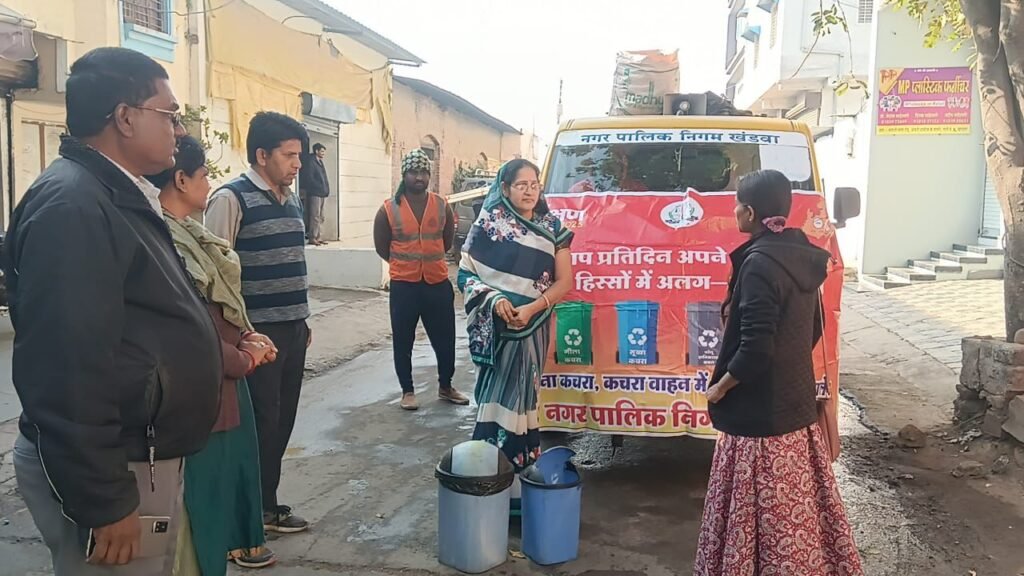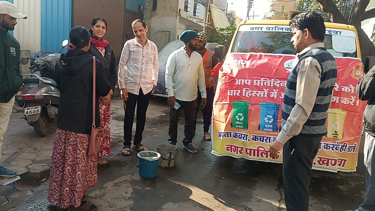 खण्डवा // नगर निगम खंडवा के जोन क्रमांक 4 अंतर्गत वार्ड क्रमांक 26 में आईईसी टीम द्वारा डोर-टू-डोर वाहन के माध्यम से स्वच्छता जागरूकता अभियान संचालित किया गया। इस दौरान वार्डवासियों को घर पर ही कचरे के पृथक्करण की जानकारी दी गई, जिसमें गीला कचरा, सूखा कचरा, हाइजेनिक कचरा एवं अन्य कचरे को अलग-अलग कर डोर-टू-डोर वाहन में ही देने हेतु समझाइश दी गई। साथ ही नागरिकों से अपील की गई कि सार्वजनिक स्थानों पर कचरा न फैलाएं और स्वच्छता बनाए रखें। यह जानकारी सहायक आयुक्त द्वारा प्रत्यक्ष रूप से रहवासियों को दी गई।