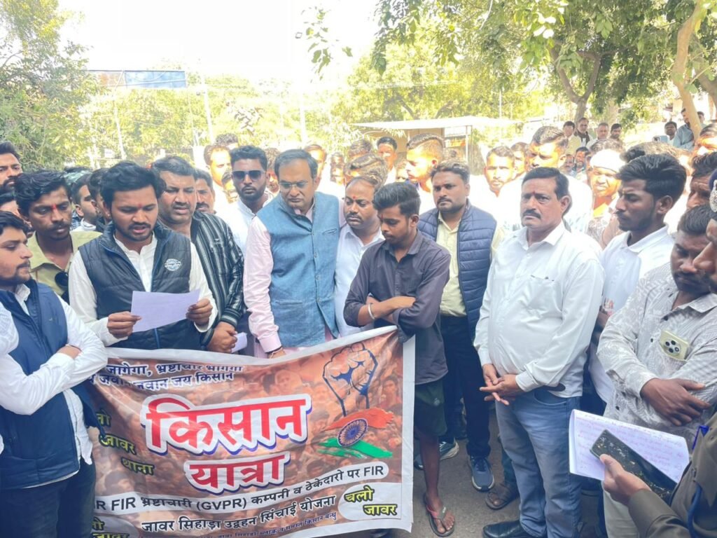 चंदन सिंह राजपूत,ब्रजेश सिंह पवार के नेतृत्व में शुक्रवार को किसानों ने ज्ञापन के माध्यम से जावर में किसानों ने अपनी मांगों को लेकर ग्राम भकराड़ा से होते हुए खेड़ी,पिपलिया फूल,ढोरानी,खुटफल,बमनगाव सहित आस पास के ग्रामीणों ने जावर थाना पहुचकर एक सामूहिक ज्ञापन प्रस्तुत कर राज्यपाल और लोकायुक्त से मांग की है कि कंपनी, उसके ठेकेदार और संबंधित अधिकारियों/इंजीनियरों के खिलाफ एफआईआर दर्ज कर विधिसम्मत जांच करवाई जाए और दोषियों के विरुद्ध कठोर कानूनी कार्रवाई सुनिश्चित की जाए।