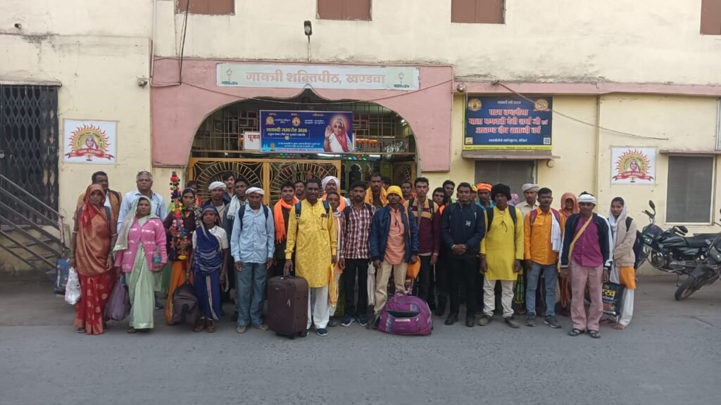 शांतिकुंज हरिद्वार के लिए माता भगवती देवी शर्मा एवं अखंड दीप के 100 वर्ष पूर्ण होने पर 1926- 2026 “जन्म शताब्दी वर्ष” गायत्री परिवार संपूर्ण भारत में सभी शक्ति पीठ, चेतना केन्द्रों पर पूरे वर्ष भर मना रहा है जिसके उद्घोष में शांतिकुंज हरिद्वार में दिनांक 19 जनवरी से 27 जनवरी 2026 तक संपूर्ण भारत से गायत्री परिजन शांतिकुंज हरिद्वार के लिए पहुंच रहे हैं इसी क्रम में गायत्री शक्तिपीठ खंडवा और जिले से आदिवासी समाज के परिजनों का 80 लोगों का जत्था परिवार सहित अखिल विश्व गायत्री परिवार शांतिकुंज हरिद्वार के लिए रवाना हुआ जिसमें खंडवा जिले के दूर अंचल के आदिवासी समुदाय के महिला पुरुष इस आयोजन में सम्मिलित होने के लिए गायत्री शक्तिपीठ से शांतिकुंज के लिए खंडवा जिले में सुख समृद्धि और सद्भावना की प्रार्थना के साथ “हम सुधरेंगे युग सुधरेगा, हम बदलेंगे युग बदलेगा” का उद्घोष करते हुए खंडवा से रवाना हुए खंडवा शक्तिपीठ से महाकाल मंडल गायत्री परिवार के सदस्यों के साथ-जगदीश सांमेंडिया ओर समस्त मातृशक्ति एवं ट्रस्ट पदाधिकारी परिजनों कार्यकर्ताओं ने गायत्री शक्तिपीठ पर उनका स्वागत कर ट्रेन से विदा किया। यह जानकारी गायत्री परिजन श्री देवा भावसार ने दी उन्होंने बताया कि शताब्दी वर्ष2026, 100 वर्ष पूर्ण होने पर गायत्री परिवार द्वारा विराट पंच कुंडीय महायज्ञ नॉर्मल स्कूल के पास पडावा खंडवा पर 24 जनवरी रविवार को किया जाएगा।।