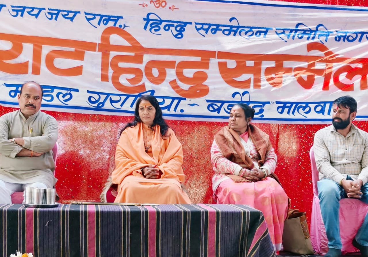 बड़ौद- राष्ट्रीय स्वयंसेवक संघ के शताब्दी वर्ष के उपलक्ष्य में गुराडिया मंडल के हिंदू सम्मेलन का आयोजन दुधाखेड़ी माताजी मंदिर बरखेड़ा में किया गया।कार्यक्रम प्रारंभ अतिथि साध्वी हेमलता दीदी मां सरकार भारत माता मंदिर उड़ाना उज्जैन,श्रीमती भार्गवी जी जोशी राष्ट्रीय सेविका समिति जिला कार्यवाहिका नलखेड़ा, श्री दिनेश जी कुंभकार जिला संपर्क प्रमुख,श्री महादेवसिंह जी चौहान मंडल सहसंयोजक हिंदू सम्मेलन के आतिथ्य में आयोजित किया गया।सर्वप्रथम अतिथियों द्वारा गौमाता पूजन व भारत माता के चित्र के सम्मुख दीप प्रज्वलन व माल्यार्पण कर कार्यक्रम प्रारंभ किया गया।अतिथि परिचय श्री रामप्रसाद सेन द्वारा करवाया गया।हिंदू सम्मेलन कार्यक्रम के अतिथि उद्बोधन में साध्वी दीदी मां सरकार ने अपने उद्बोधन में कहा कि संगठित हिंदू समाज ही राष्ट्र की उन्नति का आधार हैं हम सभी हिंदुओं को एक पंगत में बैठना और एक संगत में रहने की आवश्यकता हैं उन्होंने कहा कि हमारी व्यक्तिगत लड़ाई हो सकती है लेकिन वह व्यक्तिगत लड़ाई राष्ट्र के लिए कुछ नहीं इसलिए राष्ट्र कार्य के लिए हमें आगे आना पड़ेगा,हम सभी के संकल्प के द्वारा अयोध्या में प्रभु श्री का राम मंदिर बनकर तैयार हो गया हैं।श्रीमती भार्गवी जी जोशी ने अपने उद्बोधन में संघ के पंच परिवर्तन के विषय पर विस्तार से बताया जिसमें कुटुंब प्रबोधन के माध्यम से टूटते परिवार का कारण आधुनिक जीवन शैली को बताया उन्होंने संस्कारों के साथ परिवार को जोड़ने की बात कही। साथ ही उन्होंने बताया कि नारी शक्ति भी परिवार में बच्चों को संस्कारित कर राष्ट्र की सेवा कर सकती।कार्यक्रम के मुख्य वक्ता श्री दिनेश जी कुंभकार ने अपने उद्बोधन में संघ की 100 वर्ष की यात्रा के बारे में बताया एवं डॉ.केशवराव बलीराम हेडगेवार जी के जीवन पर प्रकाश डाला और बताया कि किस प्रकार डॉक्टर साहब ने अपना जीवन राष्ट्र सेवा के लिए समर्पित किया साथ ही उन्होंने बताया कि हमारा गौरवशाली शक्तिशाली इतिहास रहा हैं,हमारा भारत देश पहले अपार धन संपदा वाला देश था जो मुगलों एवं अंग्रेजों के द्वारा लूटा गया।कार्यक्रम के अंत में भारत माता की आरती मंचासीन अतिथियों द्वारा की गई।कार्यक्रम का संचालन श्री नरेंद्रसिंह राजपूत द्वारा किया गया