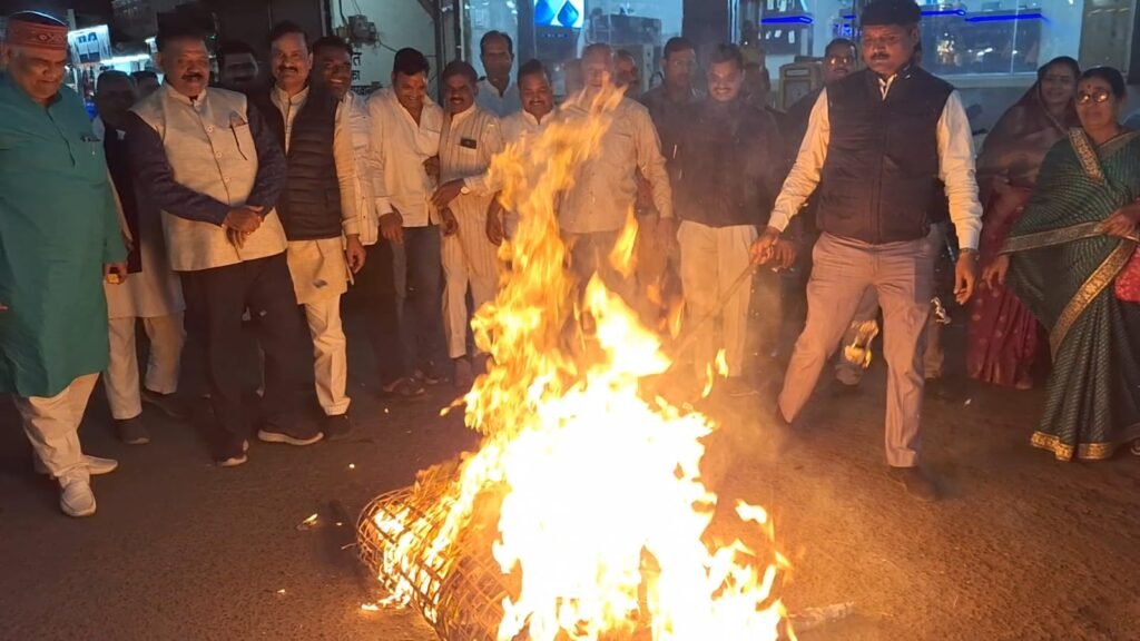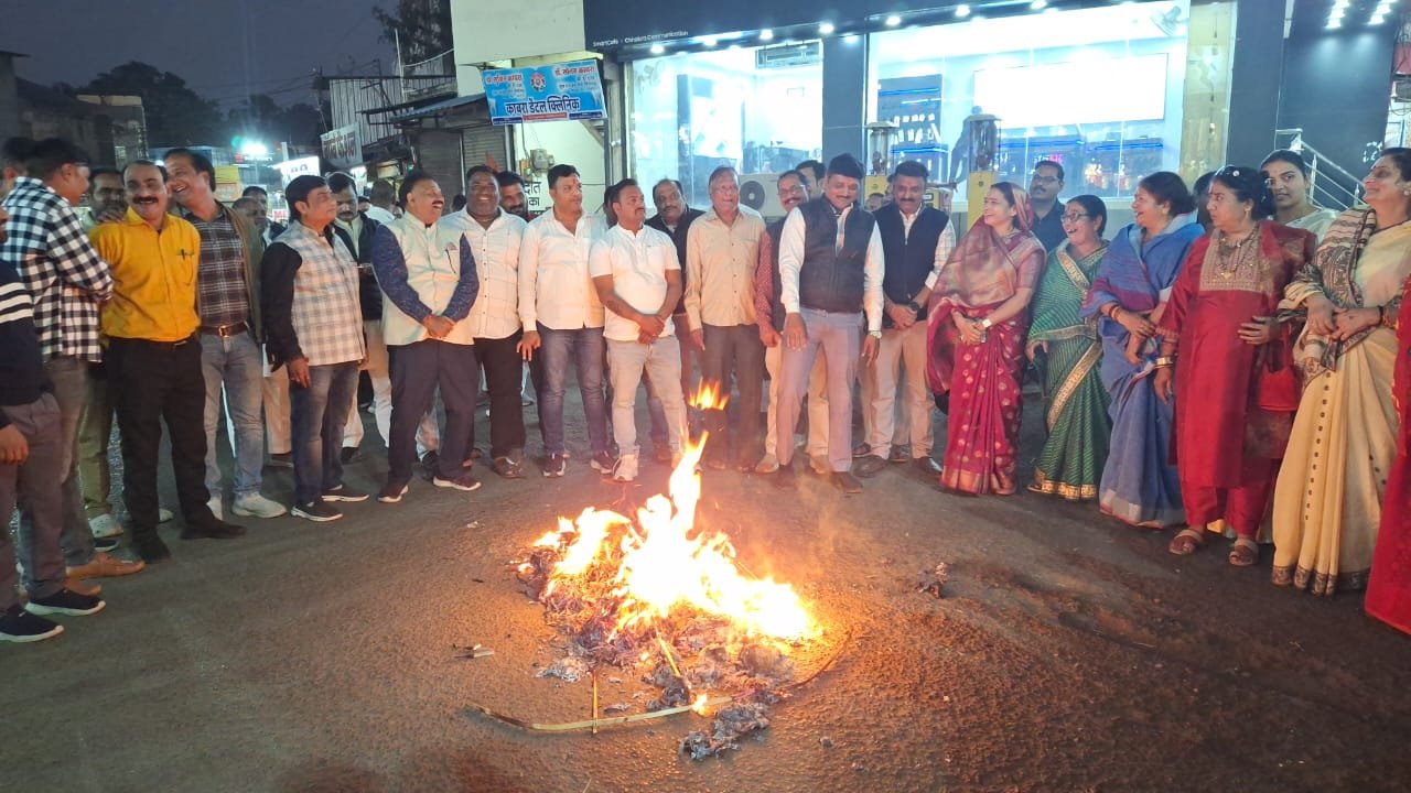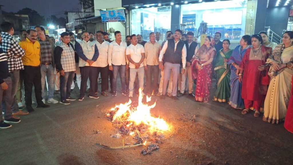 पुतले का दहन किया गया। प्रवक्ता सुनील जैन ने बताया कि पुतला दहन का कार्यक्रम अध्यक्ष राजपाल सिंह तोमर के मार्गदर्शन में आयोजित हुआ जिसमें जिला महामंत्री धर्मेंद्र बजाज महापौर अमृता अमर यादव विधायक कंचन मुकेश तंवे पूर्व विधायक देवेंद्र वर्मा सेवादास पटेल राजेश तिवारी तपन डोंगरे प्रदीप यादव रोहित मिश्रा हरीश सेन, स्नेहा पाराशर,गणेश गुरबाणी, अमर यादव, प्रवक्ता सुनील जैन, आशीष चटकेले, अनूप पटेल प्रियांशु चौरे, भारत पटेल, संजय राणा, अकरम खान,महिला मोर्चा अध्यक्ष इंदु दुबे,महामंत्री श्रुति जैन, ममता बोरसे, शारदा तांदले, अन्नपूर्णा तवर हर्षा ठाकुर, प्रमिला शर्मा,