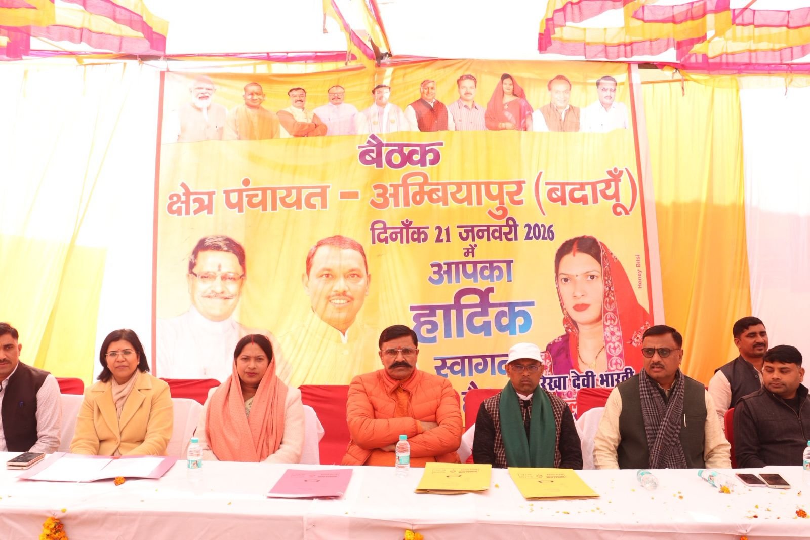 बैठक को मुख्य अतिथि के रूप में पूर्व राज्यमंत्री सदर विधायक श्री महेश चंद्र गुप्ता जी, मान विधायक बिल्सी श्री हरीश शाक्य जी, मा. जिला पंचायत अध्यक्ष श्रीमती वर्षा यादव जी, मा. प्रदेश मंत्री भाजपा श्री डी पी भारती जी, खण्ड विकास अधिकारी श्रीमती शैली गोविल जी ने सम्बोधित कर सरकार की उपलब्धियों पर प्रकाश डाला।