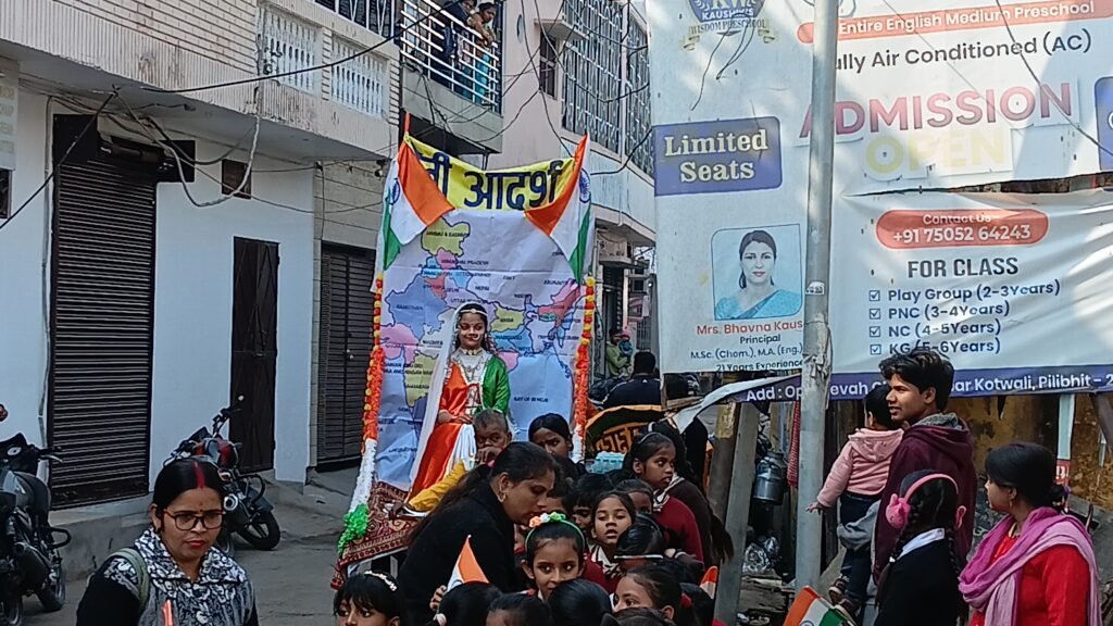 तिरंगे के साथ गूंजा पीलीभीत: बेबी आदर्श स्कूल के बच्चों ने रैली निकाल जगाई देशभक्ति की अलख