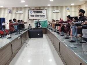 महात्मा गांधी की पुण्यतिथि पर जिला पंचायत सूरजपुर में मौन एवं नशा मुक्ति शपथ कार्यक्रम आयोजित