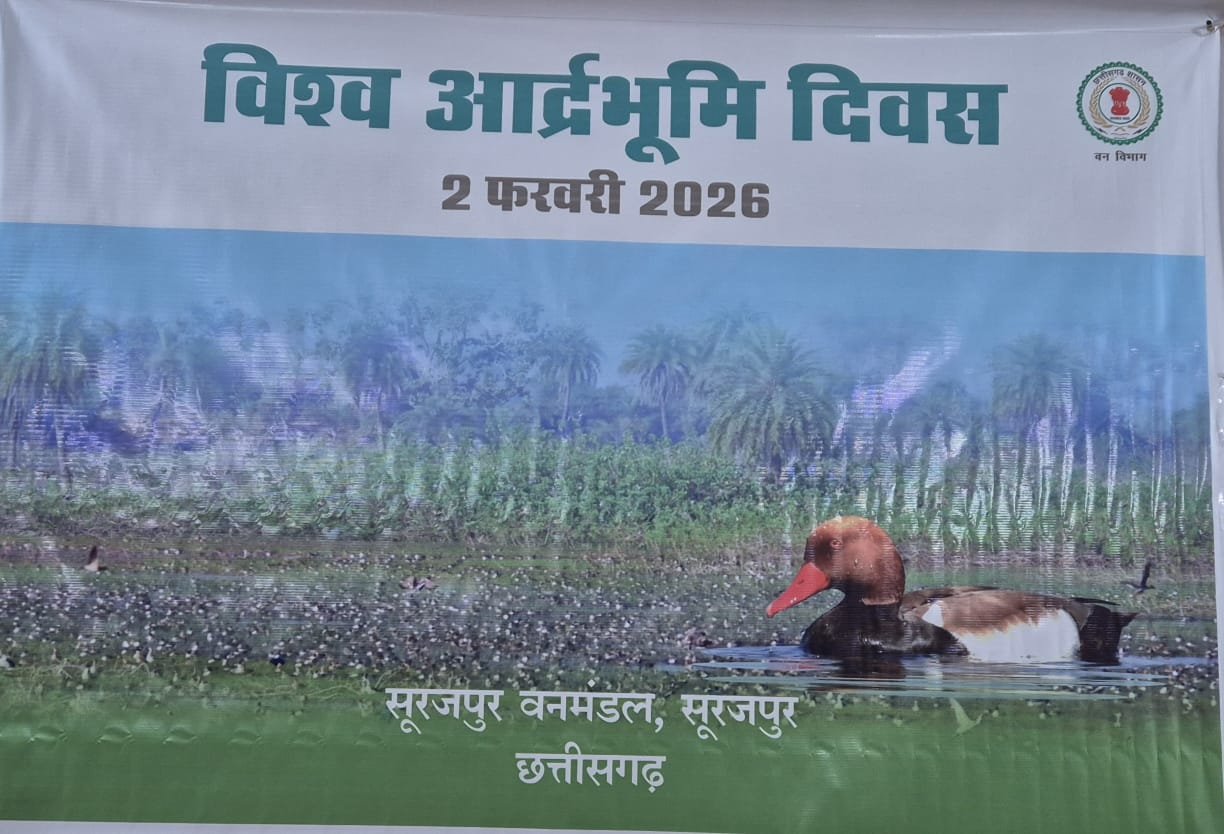 सूरजपुर/02 फरवरी 2026/ वनमण्डल कार्यालय सभागार सूरजपुर में विश्व आद्रभूमि दिवस 2026 के अवसर पर वेटलैण्ड संबंधी 01 दिवसीय प्रशिक्षण एवं जागरूकता कार्यशाला का अयोजन किया गया। कार्यशाला में डॉ. श्री राजेन्द्र मिश्रा के द्वारा वन विभाग के अधिकारियों, कर्मचारियों के साथ-साथ जिला स्तरीय वेटलैण्ड संरक्षण समिति के सदस्यों स्टेकहोल्डर्स, वेटलैण्ड मित्रों, वेटलैण्ड संरक्षण के क्षेत्र में कार्य करने वाले व्यक्तियों को प्रशिक्षण दिया गया। कार्यशाला में उपवनमण्डलाधिकारी सूरजपुर एवं प्रतापपुर, वनपरिक्षेत्राधिकारी सूरजपुर एवं प्रतापपुर, वनपरिक्षेत्र सूरजपुर, रामानुजनगर, प्रतापपुर एवं घुई के अधिकारी कर्मचारी उपस्थित रहे। प्रशिक्षण उपरात अधिकारियों कर्मचारियों को स्थानीय लाँची बाँध में ले जाकर प्रशिक्षण दिया गया।