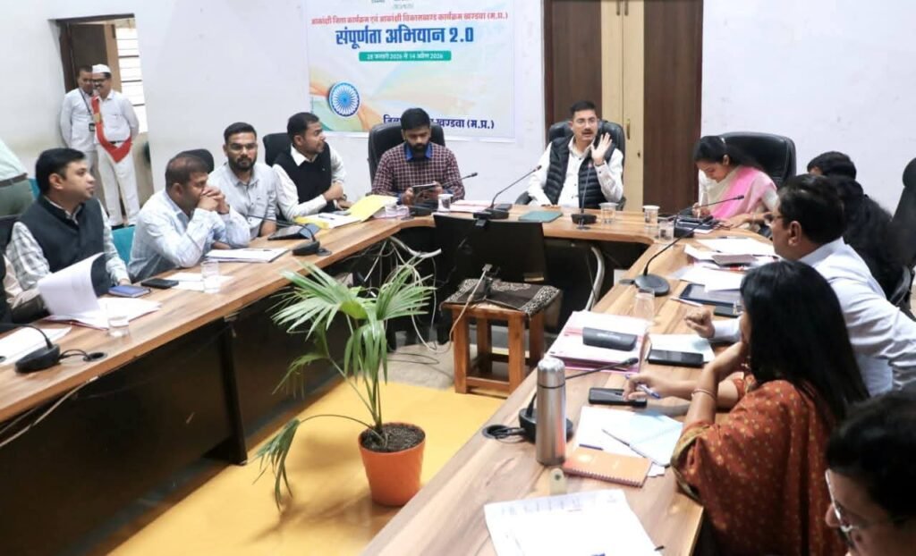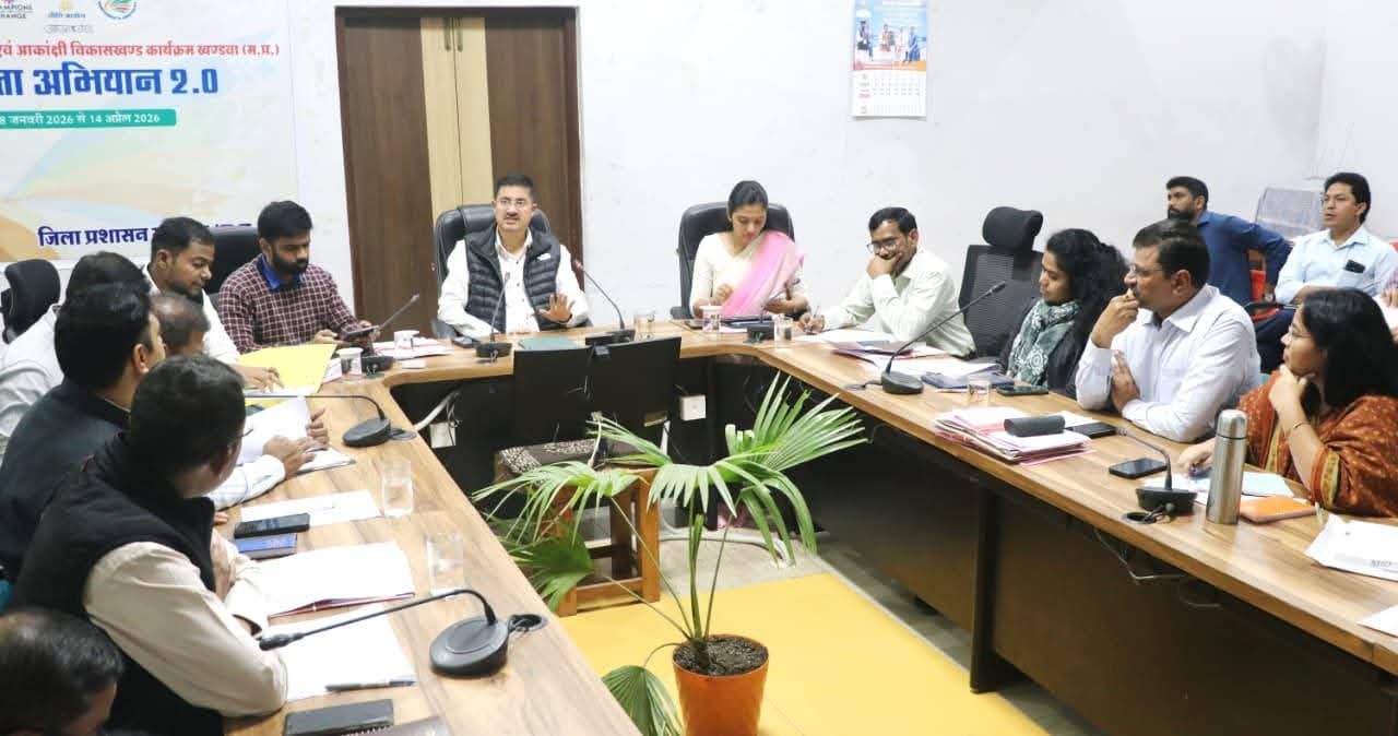 खण्डवा#कलेक्टर श्री ऋषव गुप्ता ने अधिकारियों को निर्देश दिए हैं कि “संकल्प से समाधान अभियान” के तहत आयोजित शिविरों में प्राप्त आवेदनों का प्राथमिकता से निराकरण करें। उन्होंने सभी एसडीएम से कहा कि वे अपने-अपने क्षेत्र के विकासखंड स्तरीय अधिकारियों की बैठक लेकर प्राप्त आवेदनों के निराकरण की तहसील स्तर पर नियमित रूप से समीक्षा करें और निराकरण में गति लाएं। कलेक्टर श्री गुप्ता सोमवार को कलेक्ट्रेट सभाकक्ष में आयोजित साप्ताहिक समीक्षा बैठक में संबोधित कर रहे थे। बैठक में अपर कलेक्टर श्रीमती सृष्टि देशमुख गौड़ा, जिला पंचायत के सीईओ डॉ नागार्जुन बी. गौड़ा, एसडीएम पुनासा श्री पंकज वर्मा, सहायक कलेक्टर डॉक्टर श्री कृष्णा सुशीर, अपर कलेक्टर श्री के आर बडोले तथा श्री अरविंद चौहान सहित सभी एसडीएम, मुख्य नगर पालिका अधिकारी तथा जनपद पंचायतों के मुख्य कार्यपालन अधिकारियों के साथ-साथ अन्य विभागों के जिलाधिकारी भी मौजूद थे।