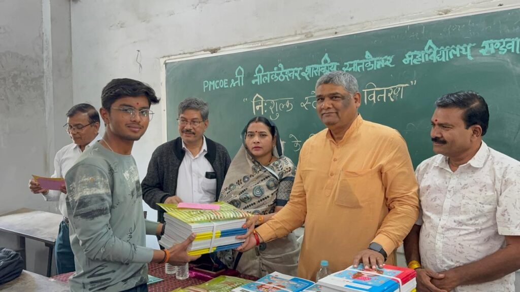 खंडवा। आज खंडवा विधायक श्रीमती कंचन मुकेश तनवे ने प्रधानमंत्री कॉलेज ऑफ़ एक्सिलेंस, श्री नीलकंठेश्वर शासकीय स्नातकोत्तर महाविद्यालय, खंडवा में आयोजित शासन के निःशुल्क स्टेशनरी वितरण कार्यक्रम में सहभागिता की। इस दौरान उन्होंने अनुसूचित जाति एवं अनुसूचित जनजाति के छात्र-छात्राओं को स्टेशनरी वितरित कर उनके उज्ज्वल भविष्य की कामना की।