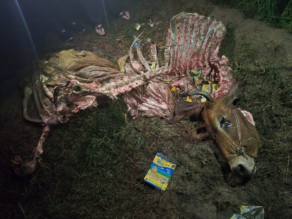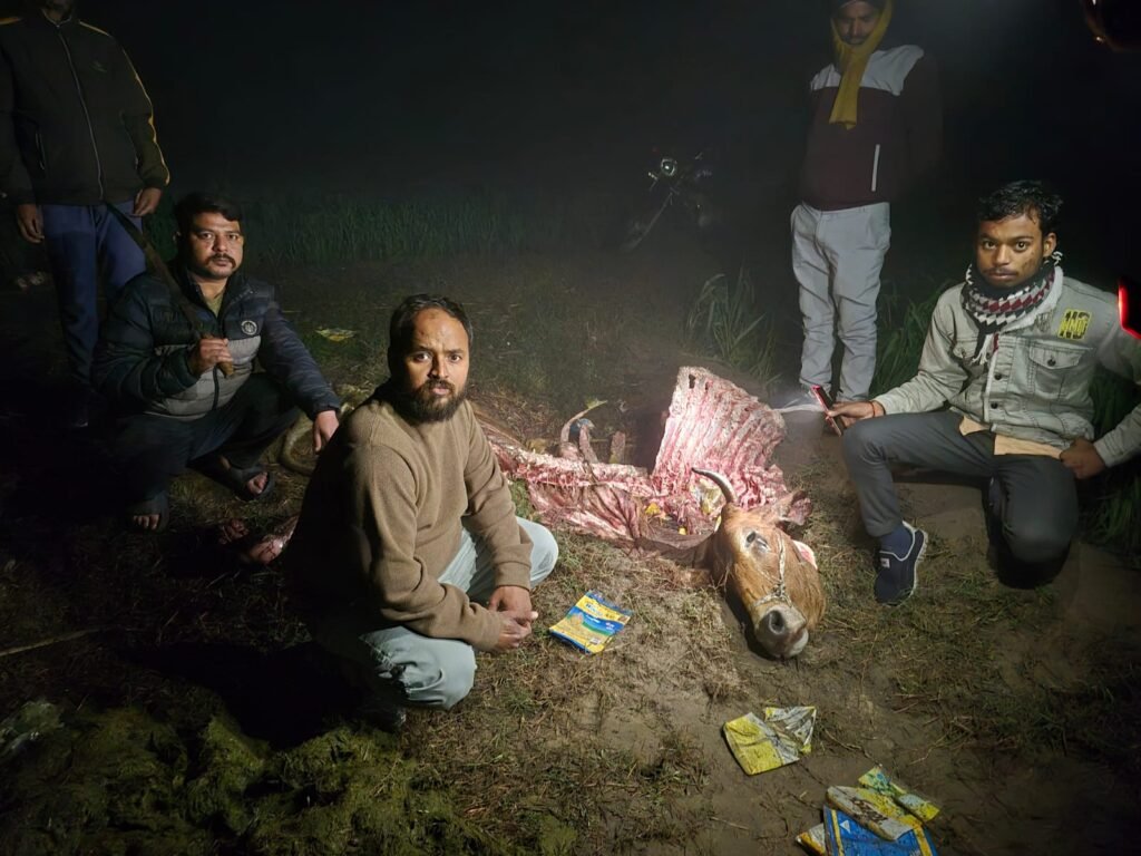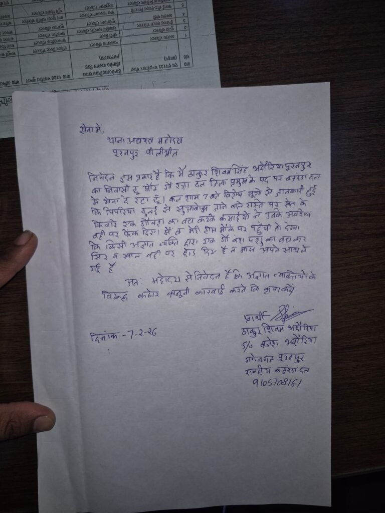 पूरनपुर (पीलीभीत): मानवता को शर्मसार करने वाली एक घटना में, बीती रात ग्राम पिपरिया से सुआबोझ जाने वाले मार्ग पर अज्ञात उपद्रवियों द्वारा गौवंश की हत्या का मामला सामने आया है। घटना की सूचना मिलते ही क्षेत्र में हड़कंप मच गया और भारी संख्या में लोग एकत्रित हो गए।