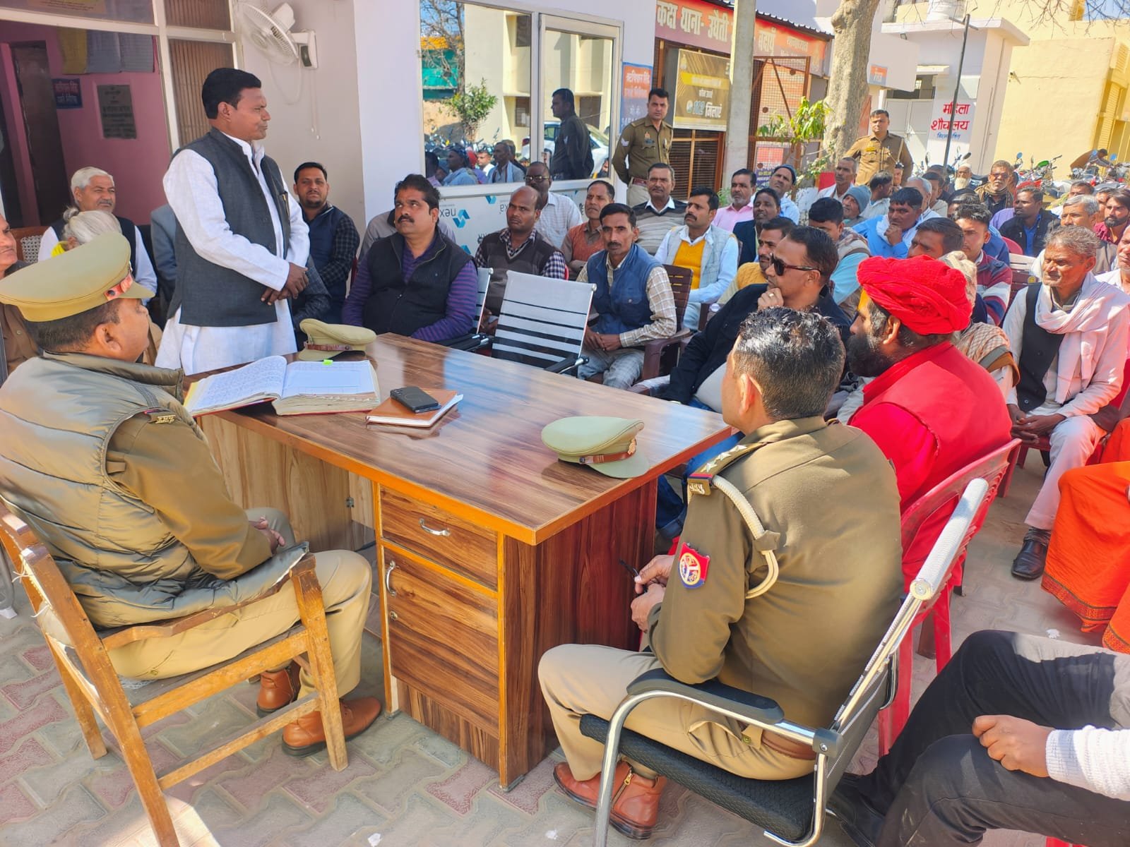 थाना प्रभारी ऋषिपाल सिंह के नेतृत्व में धर्मगुरुओं, पुजारियों व ग्राम प्रधानों के साथ बैठक की गई। महाशिवरात्रि, होली, नमाज व ईद को शांतिपूर्ण ढंग से मनाने और सांप्रदायिक सौहार्द बनाए रखने की अपील।