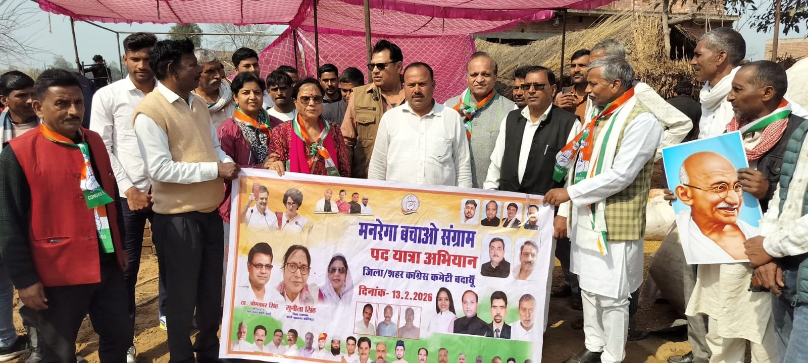 दिनांक 13 फरवरी 2026-बदायूँ: मनरेगा से महात्मा गांधी का नाम हटाने और योजना में किए गए हालिया बदलावों को वापस लेने की मांग को लेकर शुक्रवार को बदायूँ में कांग्रेसियों ने पूर्व घोषित कार्यक्रम अनुसार मनरेगा बचाओ संग्राम पदयात्रा कादर चौक ब्लॉक के ग्राम ककोड़ा से उझानी तक 15 किलोमीटर तक की निकाली। जिला शहर कांग्रेस कमेटी की ओर से निकाली पदयात्रा का नेतृत्व पूर्व जिलाध्यक्ष, प्रदेश कॉर्डिनेटर ओमकार सिंह, शहर अध्यक्ष मुन्ना लाल सागर एवं जिला उपाध्यक्ष सुनीता सिंह ने संयुक्त रूप से किया। पदयात्रा में मुख्यातिथि निवर्तमान प्रदेश उपाध्यक्ष प्रेमप्रकाश अग्रवाल मौजूद रहे पदयात्रा विधानसभा शेखूपुर के ब्लॉक कादरचौक ग्राम ककोड़ा से शुरू होकर ग्राम निधानपुर, गफ्फार नगला, रेवा, खिरिया बाकरपुर, पतौरा, बुर्रा फरीदपुर, फतेहपुर, नरऊं, उझानी नगर में अम्बेडकर पार्क तक पहुंची। जहां पर राष्ट्रगान गया कर पदयात्रा का समापन किया, पदयात्रा के दौरान कार्यकर्ता हाथों में कांग्रेस का झंडा और महात्मा गांधी का चित्र लिए हुए थे। वे मनरेगा के मूल स्वरूप की बहाली और हालिया संशोधनों को निरस्त करने की मांग कर रहे थे। पूर्व जिलाध्यक्ष, प्रदेश कॉर्डिनेटर ओमकार सिंह ने कहा कि मनरेगा ग्रामीण गरीबों और मजदूरों के लिए जीवनरेखा है। योजना से महात्मा गांधी का नाम हटाना उनके विचारों और श्रमिक हितों का अपमान है। उन्होंने मांग की कि योजना में काम की गारंटी, समय पर मजदूरी का भुगतान और जवाबदेही सुनिश्चित की जाए। साथ ही हाल में किए गए सभी बदलाव तत्काल प्रभाव से वापस लिए जाएं। इस अवसर पर मुन्ना लाल सागर, सुनीता सिंह ने कहा कांग्रेस हमेशा से श्रमिकों और वंचित वर्ग के अधिकारों की लड़ाई लड़ती रही है। मनरेगा के मूल स्वरूप से किसी भी प्रकार की छेड़छाड़ स्वीकार नहीं की जाएगी। उन्होंने सरकार से योजना को पूर्ववत लागू करने की मांग की। चौपाल सभाओं पर संचालन जिला उपाध्यक्ष वीरेश तोमर ने किया जिला सचिव उपासना चौहान ने भी विचार व्यक्त किये। मुख्य रूप से जिला सचिव वीरपाल यादव, कप्तान सिंह, उझानी नगर अध्यक्ष रियासत खान, उझानी ब्लॉक कांग्रेस कमेटी अध्यक्ष चंद्रपाल कश्यप , ब्लॉक कांग्रेस कमेटी अध्यक्ष जगतसोनपाल वर्मा, छात्र नेता अरबाज़ रजी, जिला महासचिव इगलास हुसैन, प्रदेश कांग्रेस कमेटी प्रसार भारती के सचिव मुन्नालाल पाल प्रदेश कांग्रेस कमेटी सेवादल यूथ ब्रिगेड के उपाध्यक्ष शफी अहमद ,मुजाहिद, शमसुल , श्याम पाल, समाजसेवी विनोद यादव, नरेंद्र कुमार , धीरपाल सिंह,संत कुमार, नरेश कुमार,निरंजन सिंहआदि सैकड़ों कार्यकर्ता एवं कांग्रेसजन मौजूद रहे।