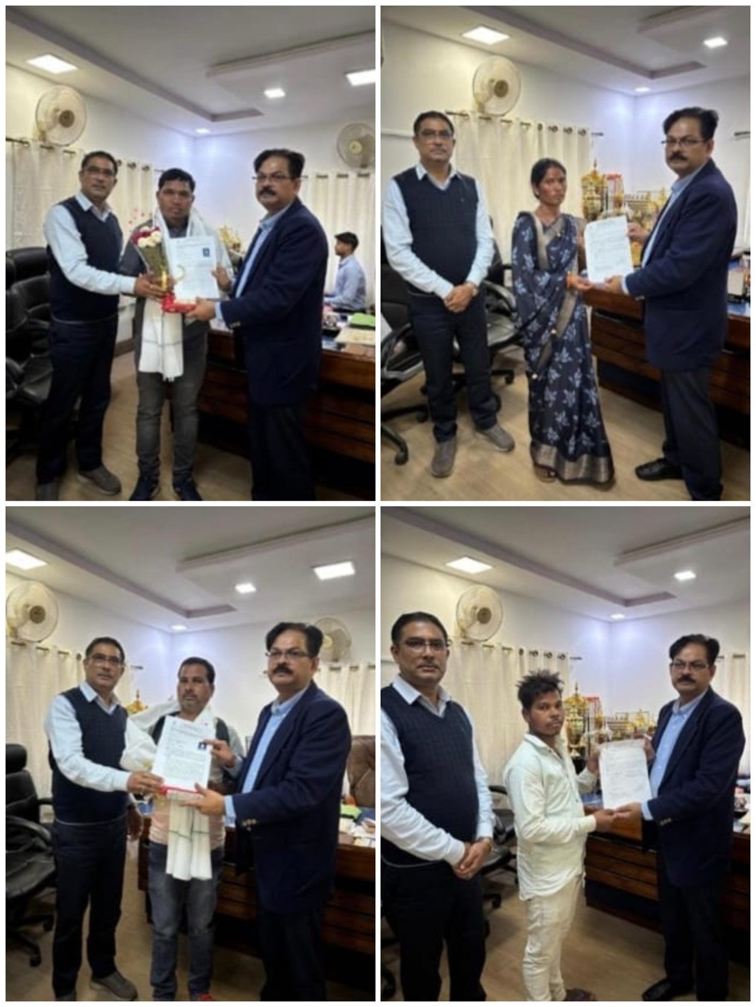 इस अवसर पर ग्राम पटना के रामनारायण सिंह, ईश्वर प्रसाद सिंह, जागेश्वर प्रसाद एवं संदीप कुमार को एसईसीएल क्षेत्रीय महाप्रबंधक श्री संजय ंिसह (एसईसीएल क्षेत्र विश्रामपुर) की उपस्थिति में नियुक्ति पत्र प्रदान किया गया। इन युवाओं के लिए यह नियुक्ति न केवल उनके व्यक्तिगत जीवन में एक नई शुरुआत है, बल्कि उनके परिवारों को भी आर्थिक सुरक्षा प्रदान करती है।