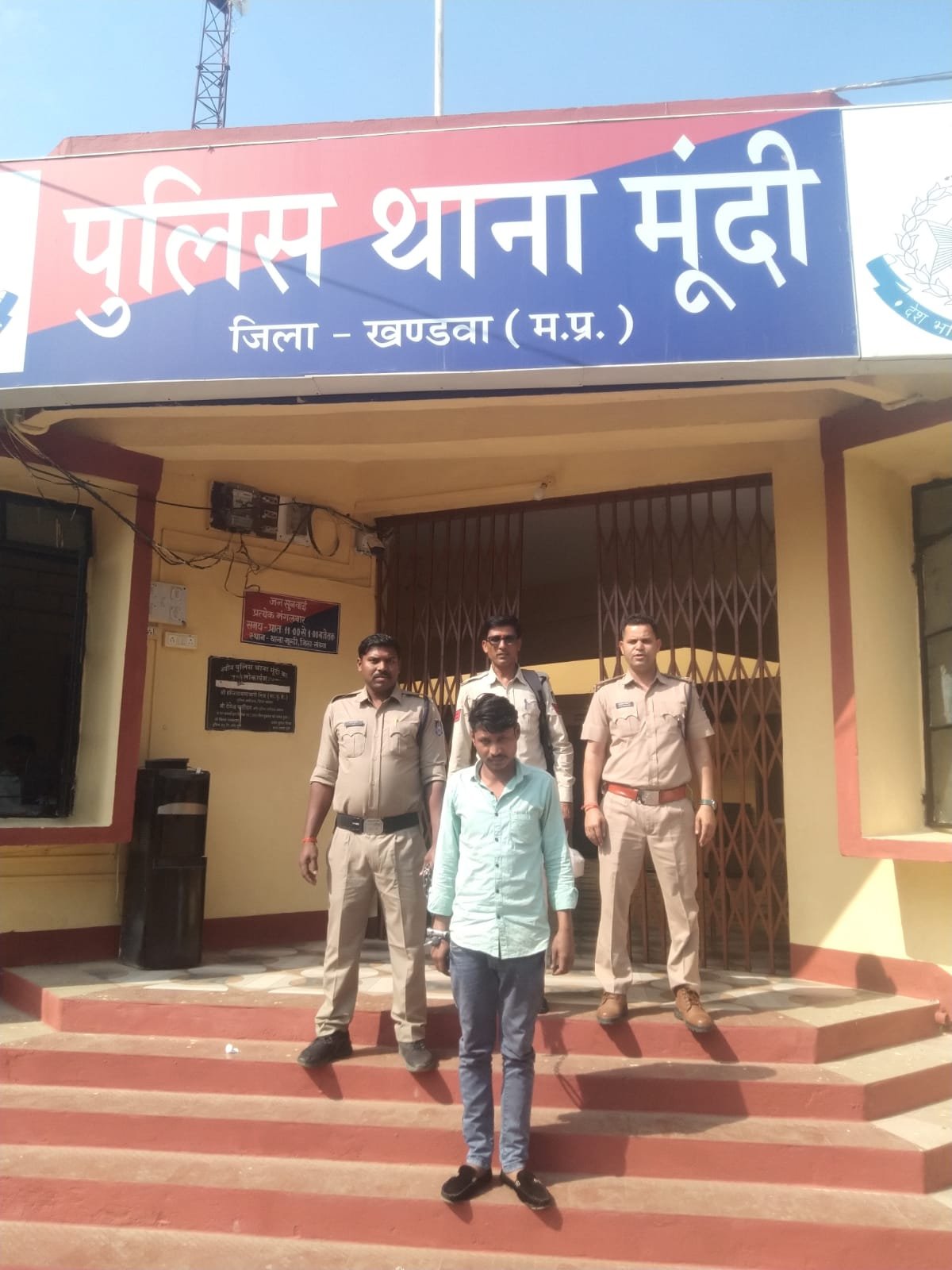घटना का विवरण :- फरियादीया द्वारा आरोपी अमर चौहान के विरुद्ध शादी करने का झांसा देकर 6 वर्ष से अधिक समय से पीडिता के साथ शारीरिक शोषण करने तथा शादी करने का कह कर शादी नही करने पर पीडिता द्वारा थाना मूंदी पर अपराध क्रमांक 60/26 धारा धारा 69 B.N.S. का अपराध पंजीबद्ध कराया गया था । निरीक्षक राजेन्द्र नरवरिया थाना प्रभारी मूंदी के नेतृत्व में उनि उमेश लाखरे द्वारा ग्राम चांदपुरा में दबिस दी जाकर आरोपी अमर चौहान पिता नर्मदा प्रसाद भिलाला उम्र 25 साल निवासी चांदपुरा को मूंदी पुलिस द्वारा 24 घंटे के अंदर गिरफ्तार किया गया। आरोपी को दिनांक 24.02.26 को खंडवा न्यायालय में पेश किया गया। न्यायालय द्वारा आरोपी को जिला जेल खण्डवा भेजा गया।