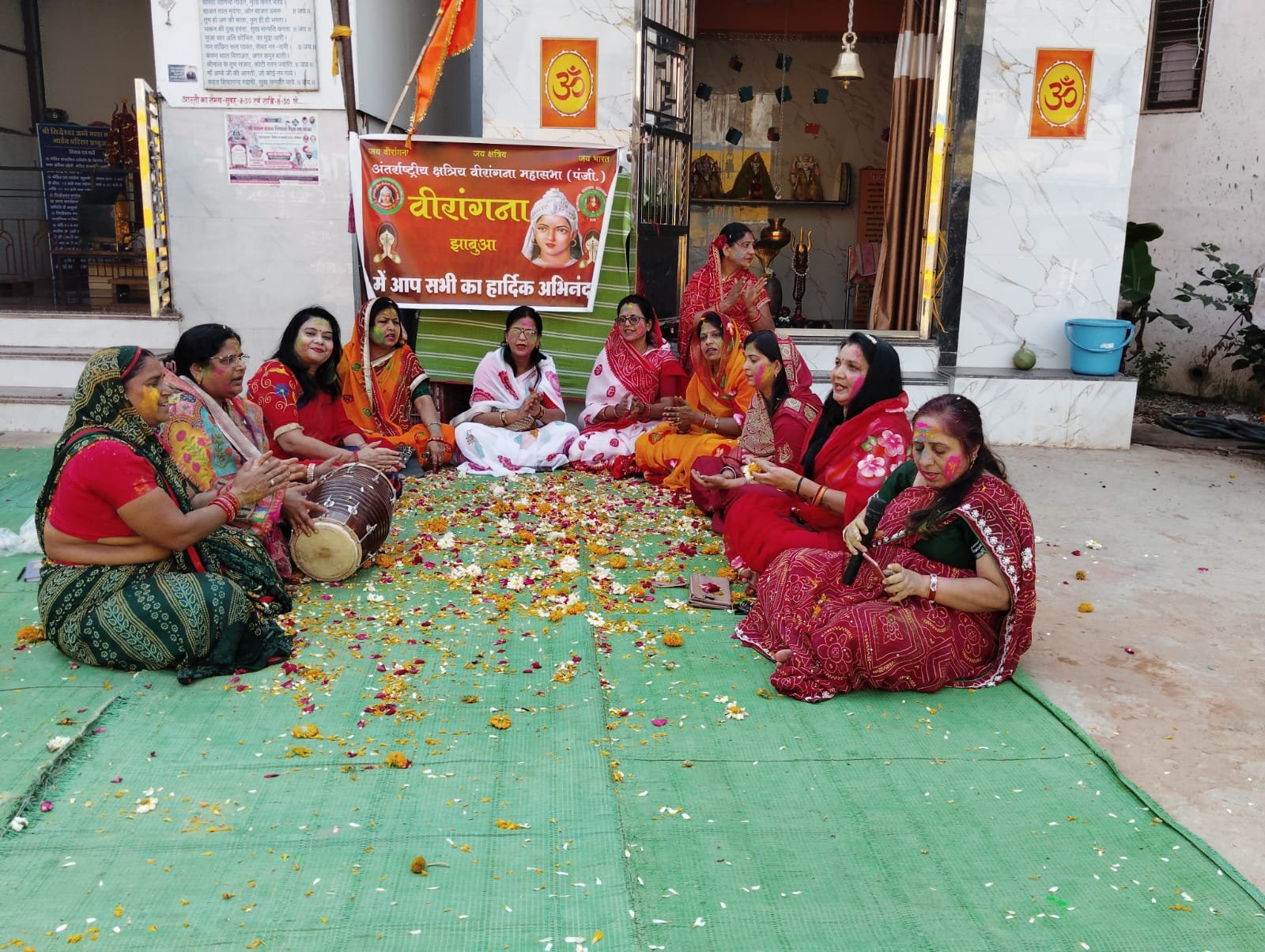 झाबुआ। अंतर्राष्ट्रीय वीरांगना महासभा की झाबुआ इकाई की क्षत्राणियों द्वारा सिद्धेश्वर कॉलोनी स्थित माता मंदिर परिसर में फागोत्सव हर्षोल्लास के साथ मनाया गया। कार्यक्रम की शुरुआत सर्वप्रथम माता पूजन से की गई। इसके पश्चात सभी महिलाओं ने एक-दूसरे को गुलाल लगाकर शुभकामनाएं दीं और फूलों की वर्षा कर उत्सव का आनंद लिया।