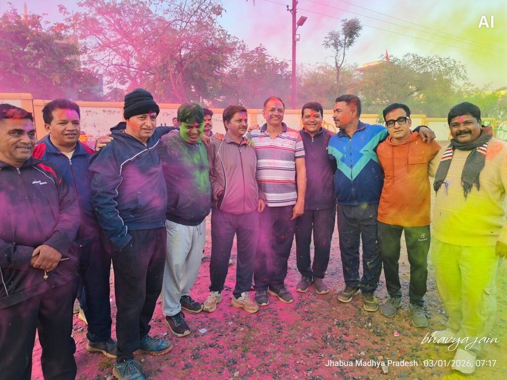 गुड मॉर्निंग क्लब के सदस्यों ने एक-दूसरे को गुलाल लगाकर होली की अग्रिम शुभकामनाएँ दीं। महिला इकाई द्वारा मैदान पर सूखे रंगों एवं गुलाल से होली खेलने की सुंदर व्यवस्था की गई थी। डीजे की मधुर धुनों और ढोलकी की थाप पर सभी सदस्य झूम उठे और रंगों के साथ नृत्य का आनंद लिया।