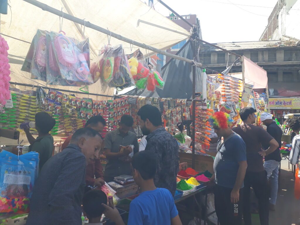 अलग अलग रंगों से सजी दुकानें,बच्चों की पिचकारियों में भी विस्तृत रेंज।
