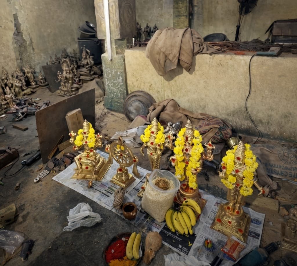 तिरुपति से विधिवत विधान के साथ लाई गईं मूर्तियाँ।