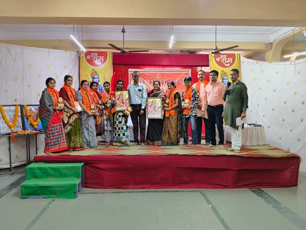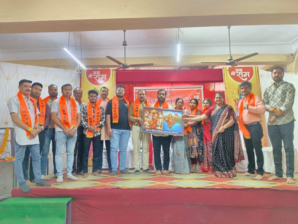 साथ ही *धर्म रक्षा निधि महाअभियान* जो 1 फरवरी से 15 फरवरी तक चलाया गया था,जिसमें जिला एवं प्रखंड में उत्कृष्ट कार्य करने वाले कार्यकर्ताओं का भगवा गमछा पहनकर सम्मान कर भारत माता का चित्र भेंट किया गया। जिला बैठक में सातों प्रखंडों का सम्मान किया गया। बैठक में विभाग संयोजक आदित्य मेहता ,जिला उपाध्यक्ष आनंद अग्रवाल,रविन्द्र शेंडगे,तेजस पटेल, राकेश बजाज,विकाश सातले,सावन पाटीदार, विकाश प्रजापति , दीपक सोनी , उत्तम यादव,मातृशक्ति से रूपाली दीदी नांदेड़कर,ममता दीदी सेन ,रश्मि दीदी जोशी,आदि कार्यकर्ता उपस्थित रहे।।