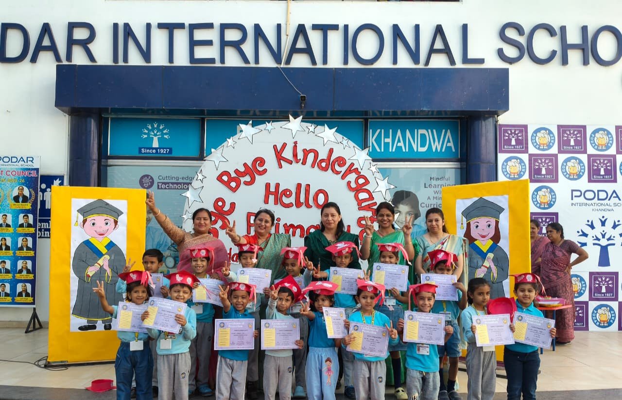 Podar Prep, Khandwa में “Bye Bye Kindergarten, Hello Primary” कार्यक्रम उत्साह और खुशी के माहौल में आयोजित किया गया। इस अवसर पर नन्हे बच्चों ने गीत, नृत्य और अन्य प्रस्तुतियों के माध्यम से सभी का मन मोह लिया।