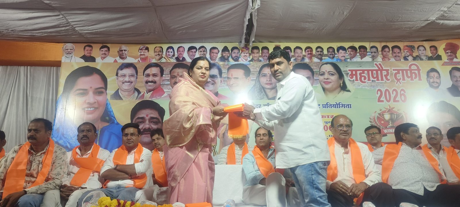 खंडवा। देश ही नहीं पूरे विश्व में क्रिकेट का जादू चल रहा है। रंग पंचमी के दिन भारत ने विश्व कप क्रिकेट के मुकाबले में शानदार जीत दर्ज की उन पलों की याद बनी रहे इस हेतु उस मुकाबले के बाद खंडवा के जिम खाना क्रिकेट मैदान पर पहली बार रात्रि कालीन महापौर ट्रॉफी 2026 क्रिकेट प्रतियोगिता का आयोजन आयोजक विक्की बावरे पार्षद एमआईसी सदस्य जवाहर गंज समिति के द्वारा 11 मार्च से प्रारंभ हुआ। समाजसेवी व प्रवक्ता सुनील जैन ने बताया कि महापौर क्रिकेट प्रतियोगिता 18 मार्च तक चलेगी, 18 मार्च को फाइनल मुकाबला होगा, लेदर बॉल नाईट टूर्नामेंट मे प्रथम पुरस्कार 51000 द्वितीय पुरस्कार 21000 राशि का रखा गया है। महापौर ट्राफी के आयोजक विक्की बांवरे ने बताया कि इस प्रतियोगिता में 16 टीम में भाग लेंगी। शुभारंभ मैच साइन क्रिकेट क्लब और महाकाल क्रिकेट क्लब के बीच खेला गया जिसमें साइन क्रिकेट क्लब ने जीत दर्ज की। दूसरा मैच श्री कृष्णा क्रिकेट क्लब और के के आर क्रिकेट क्लब के बीच हुआ श्री कृष्णा टीम ने जीत दर्ज की। प्रवक्ता सुनील जैन ने बताया कि गुरुवार को रात्रि 7:00 बजे जिम खाना क्रिकेट मैदान पर पहला मैच सुपर किंग और खंडवा गोल्ड के बीच आयोजित हुआ जिसमें सुपर किंग ने जीत दर्ज की। सुनील जैन ने बताया कि क्रिकेट प्रतियोगिता मे शुक्रवार को रात्रि कालीन पहला मैच जिमखाना क्रिकेट क्लब और तिरुपति वाला यह क्लब के बीच प्रारंभ हुआ। महापौर ट्राफी मे मुख्य अतिथि महापौर अमृता अमर यादव, परिषद अध्यक्ष अनिल विश्वकर्मा, पूर्व विधायक देवेंद्र वर्मा, सेवादास पटेल, हरीश कोटवाले, राजेश तिवारी, राजेश यादव, प्रवक्ता सुनील जैन, सोमनाथ काले, तपन डोंगरे, प्रियांशु चौरे, सागर आरतानी, निलेश निदाने, प्रवीण पांडे सहित बड़ी संख्या में खेल प्रेमी उपस्थित रहै। अतिथियों का स्वागत प्रतियोगिता संयोजक विक्की बावरे द्वारा किया गया।