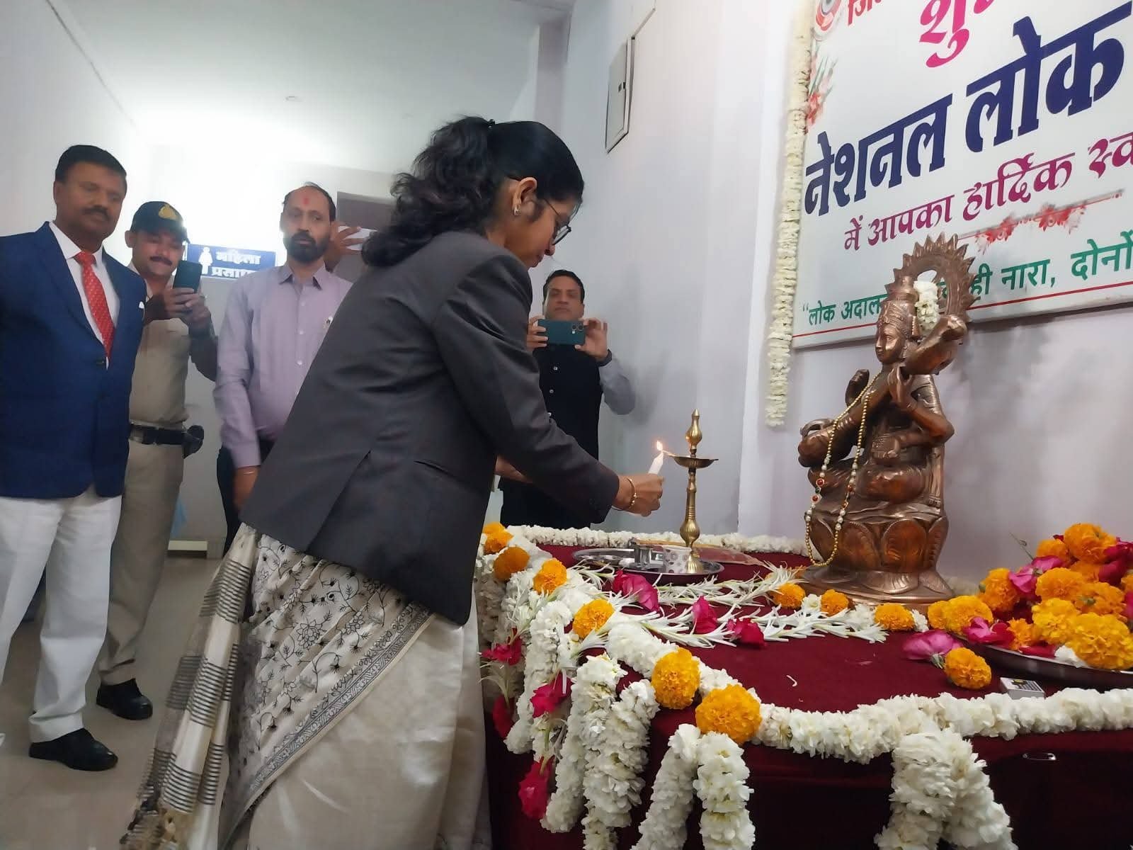 प्रधान जिला एवं सत्र न्यायाधीश एवं अध्यक्ष जिला विधिक सेवा प्राधिकरण, खंडवा श्रीमती ममता जैन के मार्गदर्शन में जिला एवं सत्र न्यायालय खंडवा तथा तहसील सिविल न्यायालय हरसूद एवं पुनासा में नेशनल लोक अदालत का आयोजन किया गया। जिला न्यायालय खंडवा में ए०डी०आर० सेंटर भवन, जिला विधिक सेवा प्राधिकरण, खंडवा में श्रीमती ममता जैन, के कर कमलों से दीप प्रज्जवलित कर नेशनल लोक अदालत का शुभारंभ किया गया। इस अवसर पर विशेष न्यायाधीश एवं समन्वयक नेशनल लोक अदालत श्रीमान् उत्सव चतुर्वेदी, प्रधान न्यायाधीश कुटुम्ब न्यायालय श्री योगराज उपाध्याय, जिला न्यायाधीश श्री अनिल चौधरी, श्री आशीष प्रताप सिंह, श्री अरविंद सिंह टेकाम, श्री वीरेन्द्र जोशी, मुख्य न्यायिक मजिस्ट्रेट श्री ठाकुर प्रसाद मालवीय, जिला रजिस्ट्रार श्री अरविंद सिंह, सचिव जिला विधिक सेवा प्राधिकरण श्री पियूष भावे, जिला अभिभाषक संघ के अध्यक्ष श्री रविन्द्र पाथरीकर, जिला मुख्यालय में पदस्थ समस्त न्यायिक अधिकारीगण, जिला विधिक सहायता अधिकारी श्री दिलावर सिंह, जिला अधिवक्ता संघ के अधिवक्तागण, लीगल एड डिफेंस काउंसिल तथा लोक अभियोजन अधिकारीगण तथा बैंक, नगर पालिका, विद्युत विभाग, बीएसएनएल, पुलिस प्रशासन के साथ-साथ पैरालीगल वालेंन्टियर्स उपस्थित रहे।