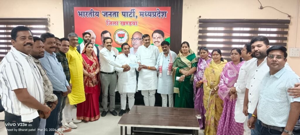 प्रवक्ता सुनील जैन ने बताया कि आजीवन सहयोग निधि अभियान अंतर्गत शुक्रवार को मांधाता विधायक नारायण पटेल द्वारा ₹ 1 लाख की समर्पण राशि का चेक भाजपा जिला अध्यक्ष राजपाल सिंह तोमर, आजीवन सहयोग निधि के प्रभारी सुभाष कोठारी को प्रदान किया गया। इस दौरान खंडवा विधायक कंचन मुकेश तनवे ,खंडवा महापौर अमृता अमर यादव , जिला पंचायत अध्यक्ष पिंकी सुदेश वानखेडे जिला महामंत्री धर्मेंद्र बजाज, सूरज पाल सिंह सोलंकी, सेवादास पटेल, अरुण सिंह मुन्ना, सुनील जैन, सुधांशु जैन, प्रियांशु चौरे, श्याम सिंह मौर्य, आनंद चौहान, इंदु दुबे, रोशनी गोलकर, प्रशांत मिश्रा, आशीष राजपूत सहित कार्यकर्ता उपस्थित थे।