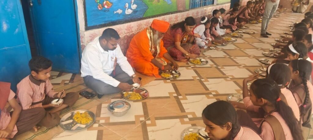 बच्चों के साथ चखा मिड-डे मील का स्वाद