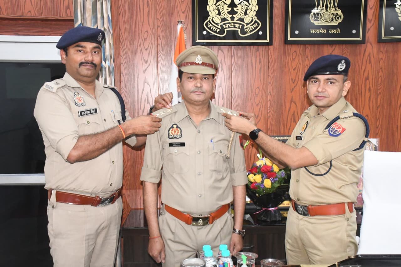 पुलिस अधीक्षक, रामपुर एवं अपर पुलिस अधीक्षक, रामपुर द्वारा कंधों पर सितारें लगाकर दी गई बधाई ।*