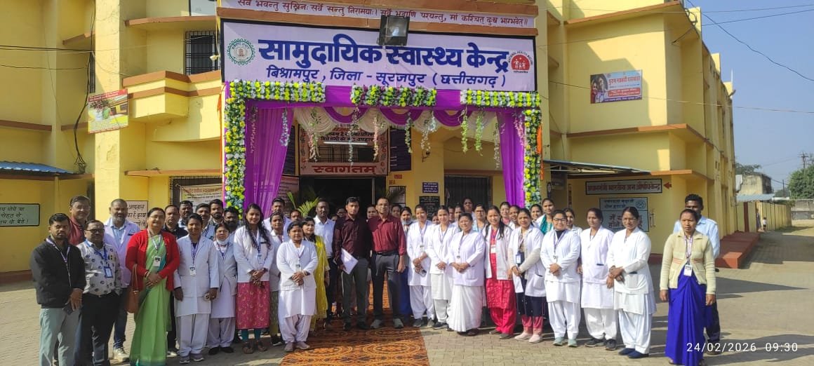 सूरजपुर/07 अप्रैल 2026/ सामुदायिक स्वास्थ्य केंद्र विश्रामपुर राष्ट्रीय गुणवत्ता मानक मूल्यांकन में 84 प्रतिशत अंकों के साथ सफलता हासिल किया है। इसके अलावा पीएचसी करजी और 12 एसएचसी को भी राष्ट्रीय गुणवत्ता मूल्यांकन में सफलता अर्जित किया।