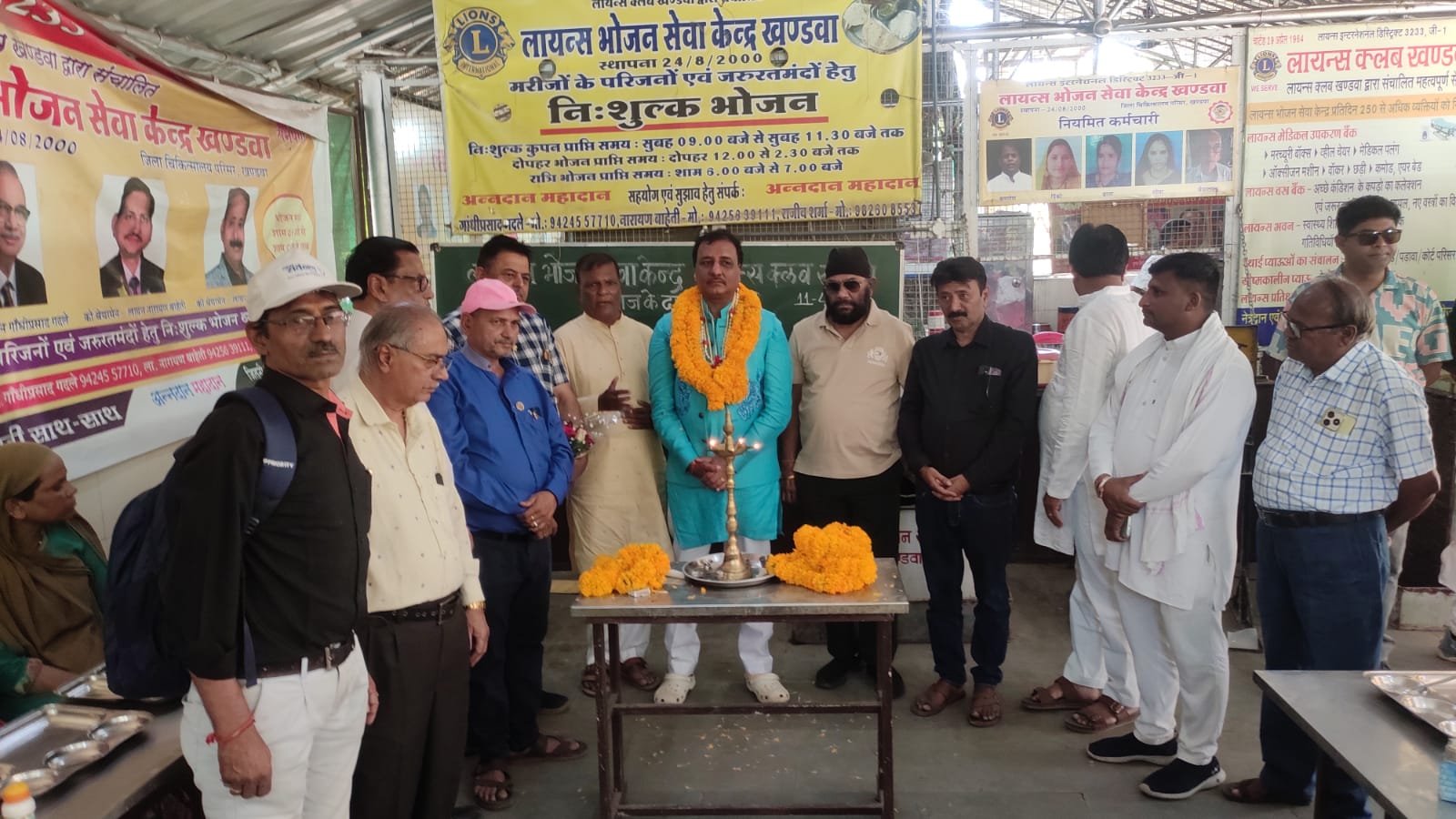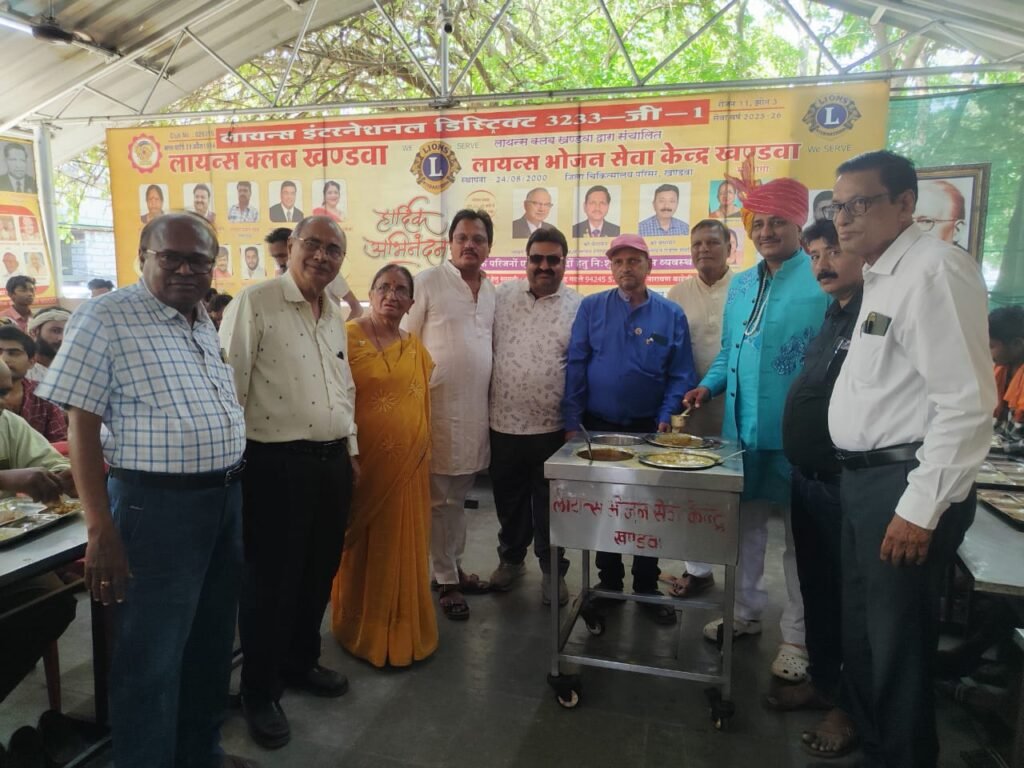 खण्डवा। लायंस क्लब खंडवा द्वारा संचालित लायन्स भोजन सेवा केंद्र जिला चिकित्सालय परिसर में लायंस क्लब खंडवा के सक्रिय साथी व समाजसेवी रितेश गोयल व मित्र मंडल द्वारा मरीजों ,परिजनों एवं जरूरतमंदों को टेबल कुर्सी पर बैठा कर भोजन कराया गया।रितेश गोयल एवं मित्र मंडल द्वारा अपने हाथों से भोजन मिठाई परोसी गई । जानकारी देते हुए नारायण बाहेती व सुनील जैन ने बताया कि लायंस क्लब खंडवा के गांधीप्रसाद गदले,नारायण बाहेती, राजीव शर्मा, बी आर तिरोले, राजीव मालवीय,घनश्याम वाधवा, सुनील जैन,,बी पी तिरोले,महेंद्र सावनेर सुशीला गदले व सदस्यों द्वारा रितेश गोयल व मित्रो का लायन्स भोजन सेवा केंद्र में पधारने पर स्वागत किया गया। माताजी स्व श्रीमती सुशीला जी गोयल को जन्मजयंती पर दीप प्रज्ज्वलित कर श्रद्धांजलि दी गई।इस अवसर पर रितेश गोयल ने कहाकि मुझे लायंस क्लब खंडवा के सदस्य होने पर गर्व है। हमारा क्लब पीड़ित मानव सेवा के क्षेत्र में अग्रणी भूमिका निभा रहा है ।भोजन सेवा के साथ ही नेत्रदान, देहदान ,वस्त्र बैंक,मेडिकल उपकरण बैंक,पर्यावरण व स्वास्थ्य सेवाओं में महत्वपूर्ण कार्य कर रहा है ।यह गौरव की बात है । गांधीप्रसाद गदलें एवं नारायण बाहेती ने कहा कि लायन रितेश गोयल का लायंस क्लब खंडवा की गतिविधियों में व सेवा कार्यों में सदैव सहयोग मिलता रहा है।रितेश गोयल शहर को अपने सेवा व पर्यावरण कार्यों से राष्ट्र में गौरवान्वित कर रहे है।इस अवसर पर परमजीत सिंघ नारंग ने कहाकि अन्नदान महादान है।में लायन्स की सेवा से बहुत प्रभावित हूँ।मै और रितेश गोयल भोजन सेवा हेतु जो भी आवश्यकता होगी उसमें पूर्ण सहयोग करेंगे। रितेश गोयल ने सहजता से केंद्र में आर्थिक सहयोग किया व सहजता से भोजन ग्रहण कर क्वालिटी व सफाई व्यवस्था की सराहना की व भोजन सेवा के कर्मचारियों का सम्मान करते हुए साड़ियां व ड्रेस प्रदान की । राजीव शर्मा व परिवार ने भी माताजी राजकुमारी शर्मा की स्मृति में विशेष सहयोग प्रदान किया।समाज