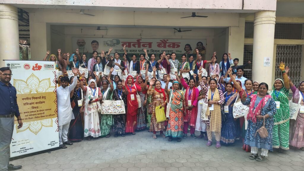 खंडवा। नगरीय प्रशासन एवं विकास विभाग, भोपाल के मार्गदर्शन में आज नगर निगम खंडवा के सभागार में सफाई मित्रों के लिए एक दिवसीय विशेष कार्यशाला का आयोजन स्वच्छता नॉलेज पार्टनर फीडबैक फाउंडेशन द्वारा किया गया। इस आयोजन का उद्देश्य स्वच्छता कर्मियों को कचरा प्रबंधन, कुछ महिला सफाई मित्रों को मास्टर ट्रेनर बनाना एवं कार्यस्थल सुरक्षा एवं स्वास्थ्य संबंधी महत्वपूर्ण पहलुओं के प्रति जागरूक और सशक्त बनाना रहा।