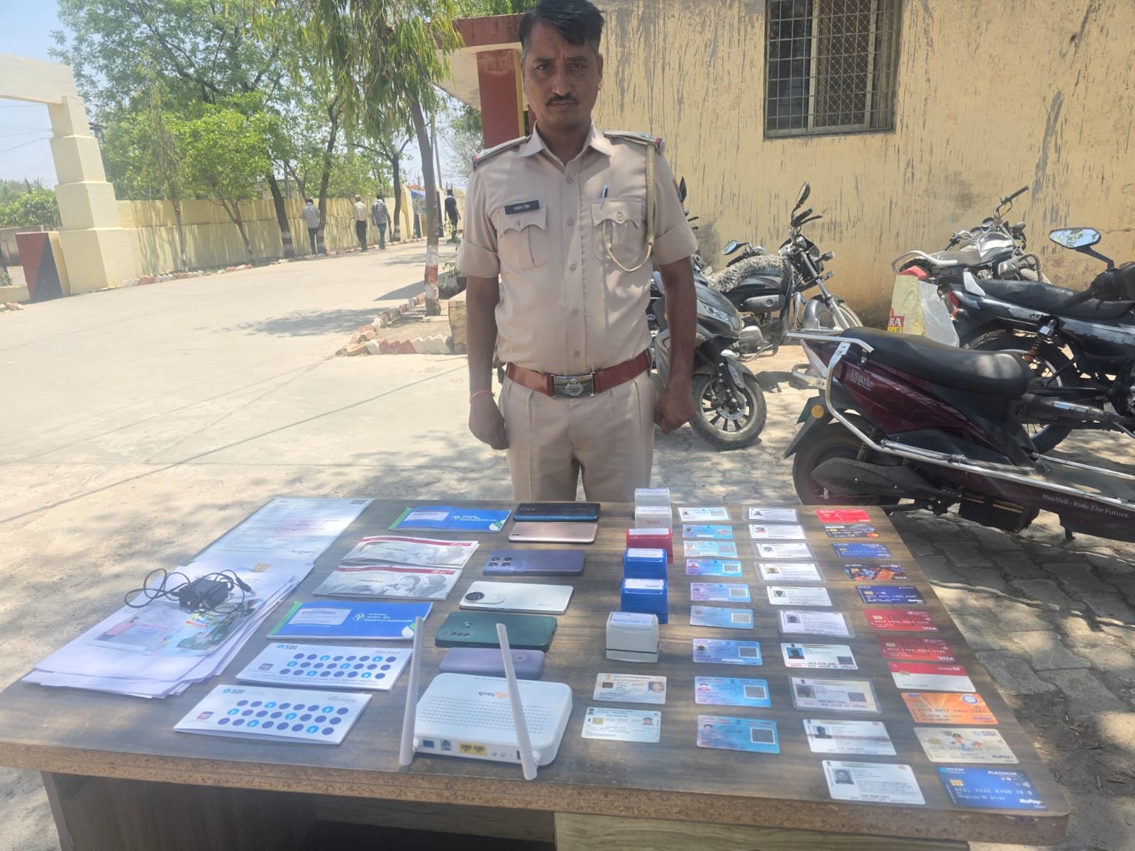 आरोपियों के कब्जे से फर्म सील मोहर-06, पैन कार्ड-09, एटीएम कार्ड-11, आधार कार्ड-10, ड्राइविंग लाइसेंस-02, फर्म फोटोग्राफ-02, चैक बुक-04, बैंक पास बुक-02, पेमेंट जमा पर्ची-02, एंड्रॉइड मोबाइल-05 मय सिम, की-पैड मोबाइल-01 मय सिम, राउटर मय एडॉप्टर-01, जीएसटी कागजात, खाली स्टाम्प, उद्यम रजिस्ट्रेशन सर्टिफिकेट, बुलेट गाड़ी की RC व एक रॉयल एनफील्ड बुलेट मोटरसाइकिल रजि. नं. UP 43 BL 5789 जब्त की गई।