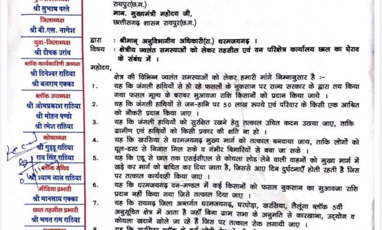 सर्व आदिवासी समाज किसानों के साथ मिलकर तहसील व वन विभाग का करेंगे घेराव रायगढ़/धरमजयगढ़ छत्तीसगढ़ प्रदेश में दिनों दिन…