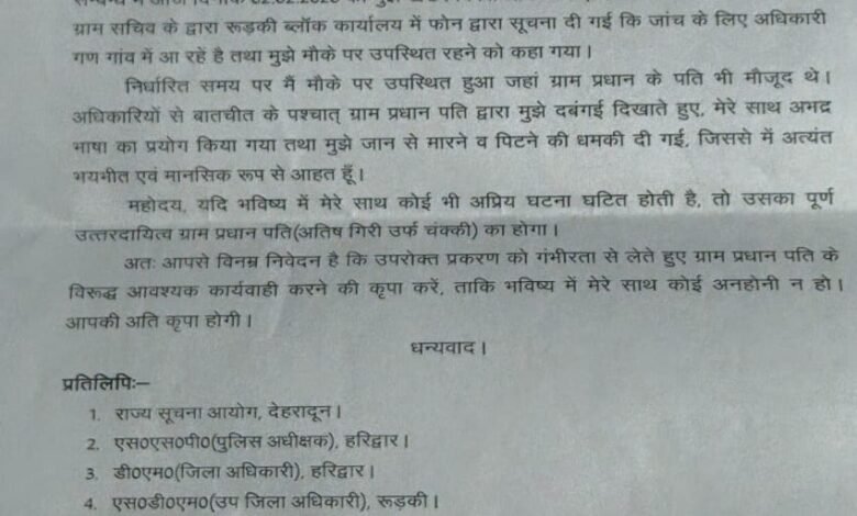 ग्राम सभा के कार्य मे अनियमितता मिलने पर RTI कार्यकर्ता अनुज कुमार को जांच आने पर ग्राम प्रधान पती आतीश…