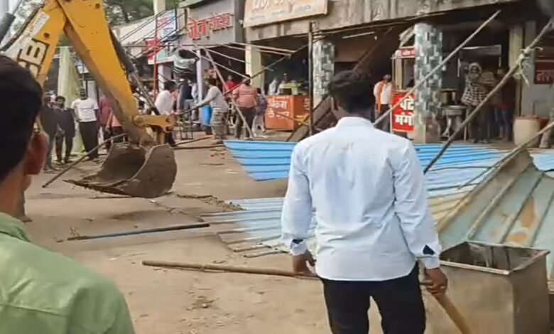 नगर परिषद छपारा द्वारा बस स्टैंड में की गई अतिक्रमण की कार्यवाही